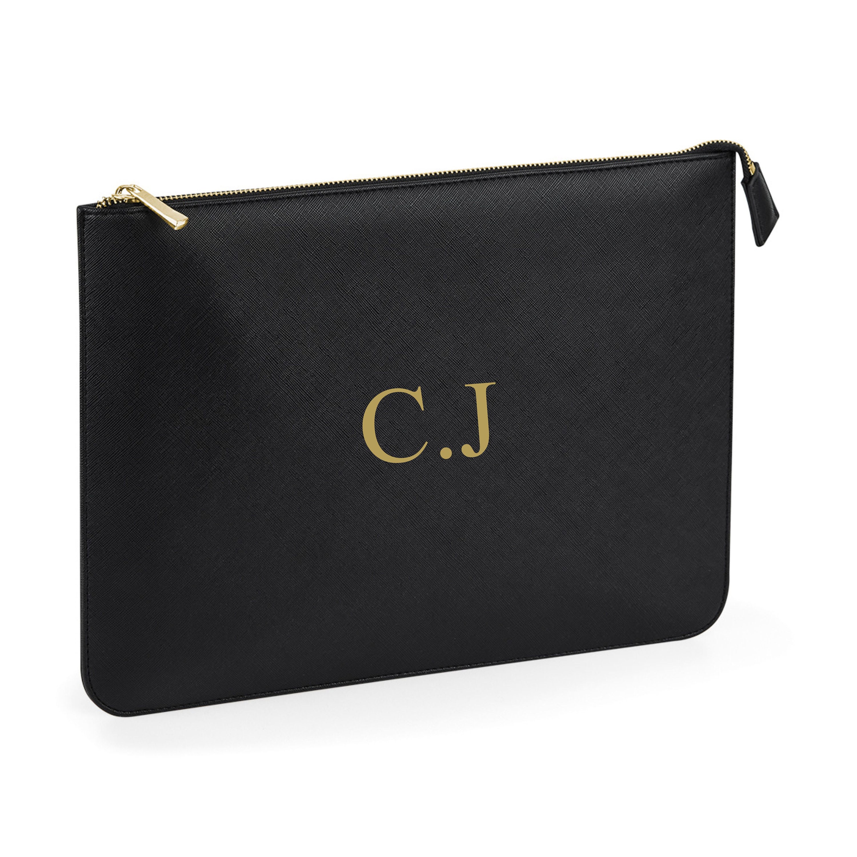 Saffiano fine grain Soft-touch lining High-shine gold metal zip Designed to comfortably fit A4 folde...