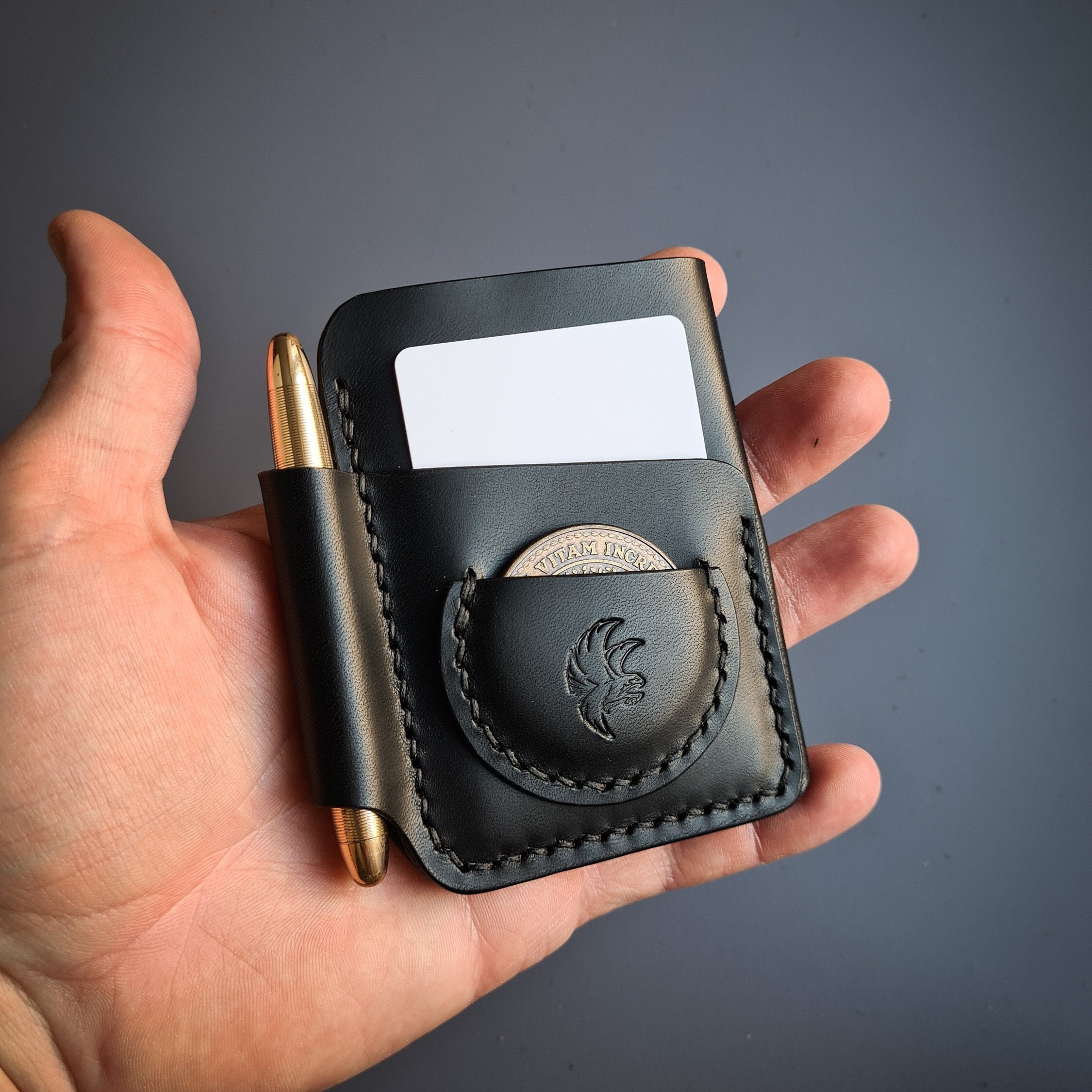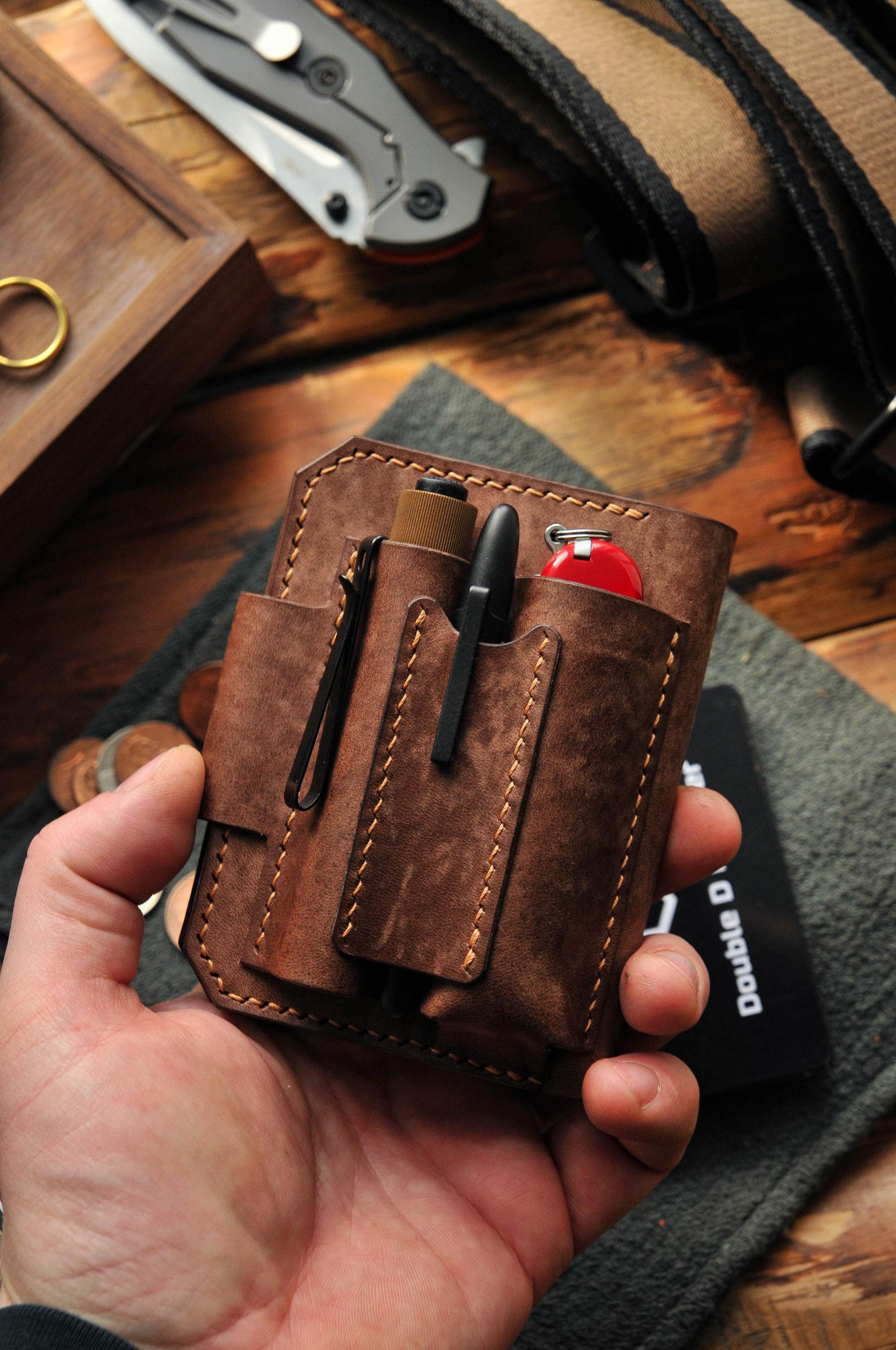 Leather Edc Wallet With Pen Slot and Coin Pocket,Edc Wallet with Co...