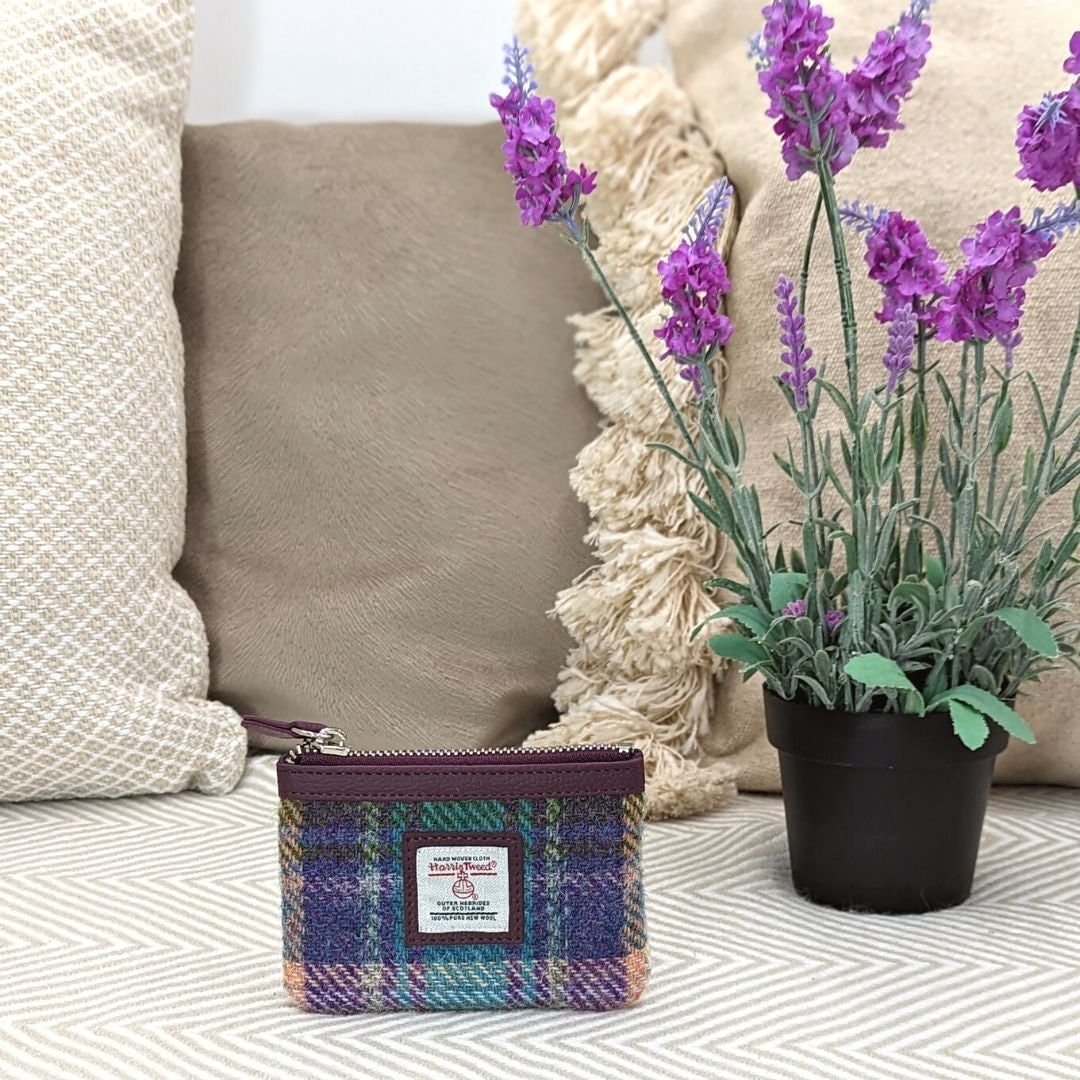 Harris Tweed Small Cloth Coin Purse in Purple Green Plaid . Female ...