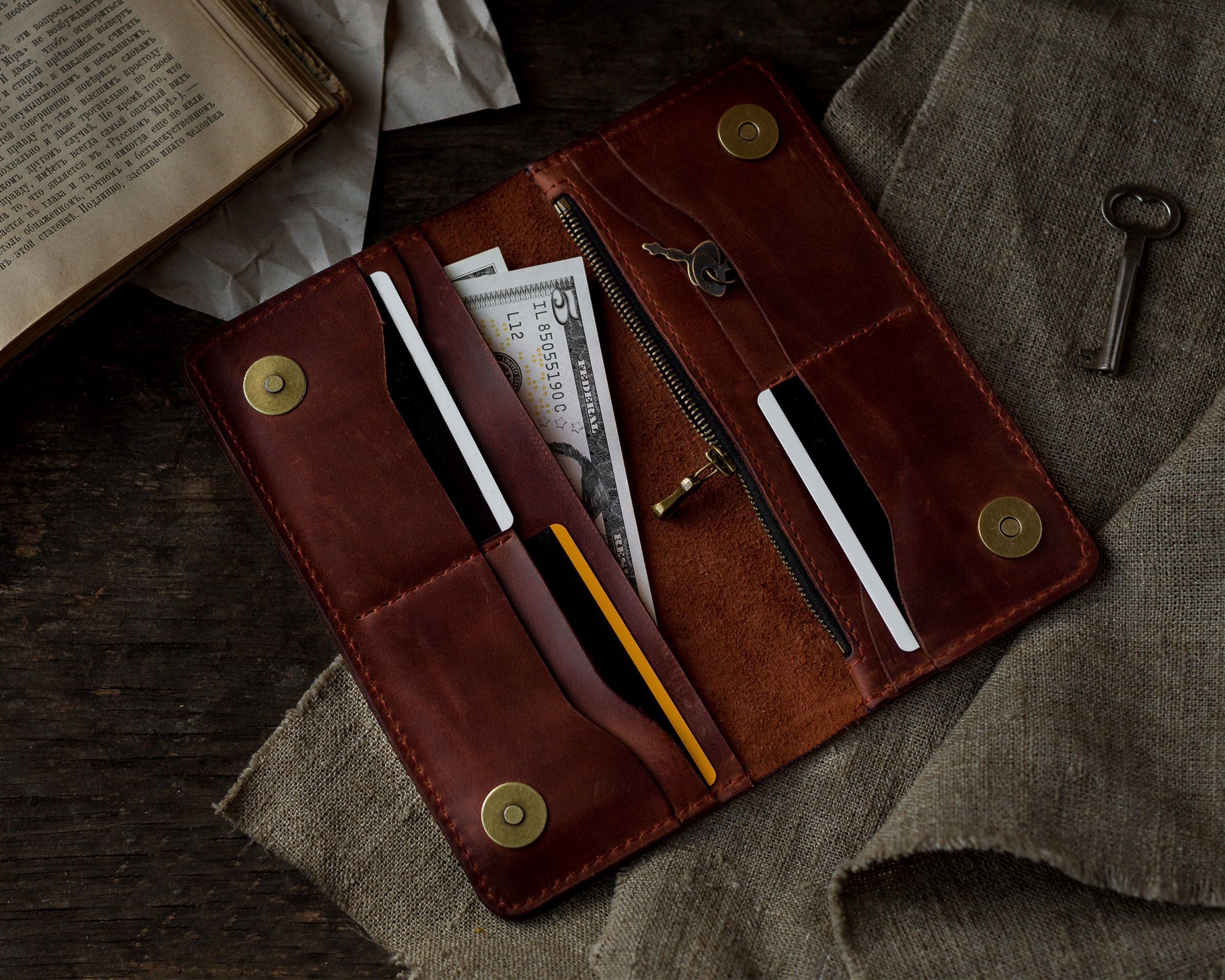 Leather Long Wallet, Personalized Leather Wallet, Leather Trucker W...