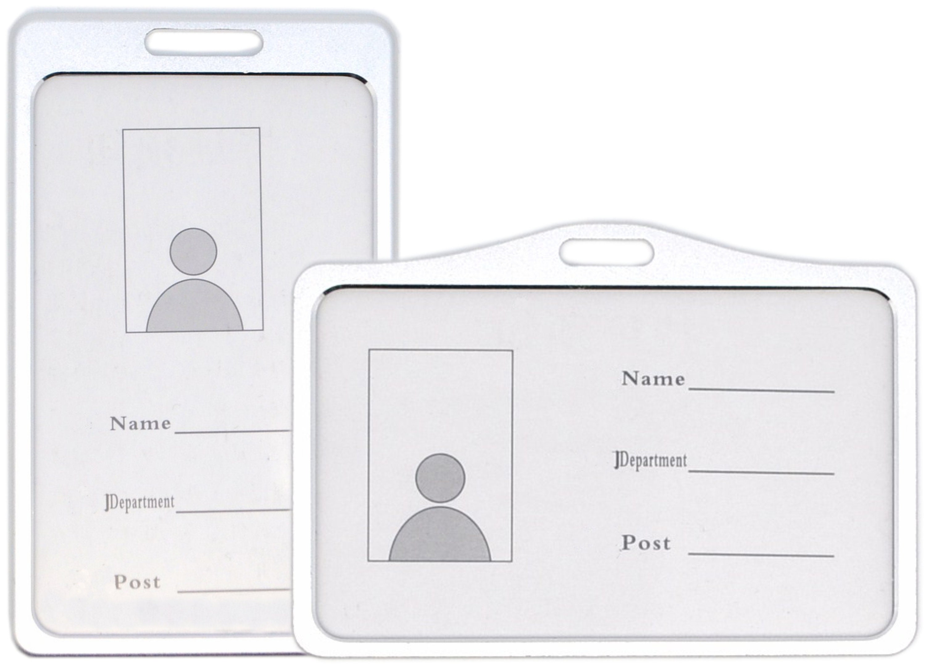 Metal ID card holder with thumb hole, transparent horizontal ID car...