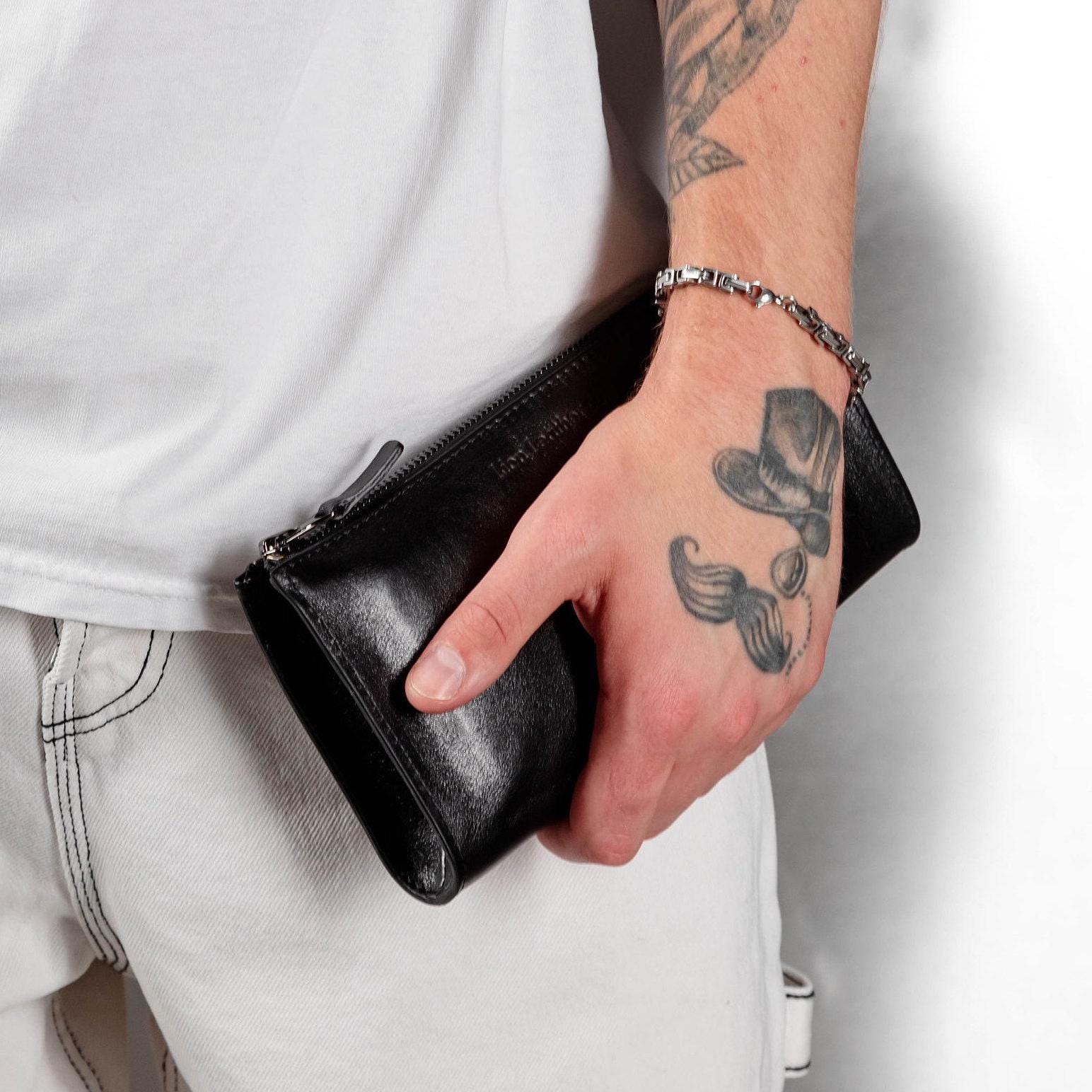 Men's leather clutch purse, Zip wallet, Personalized leather long w...