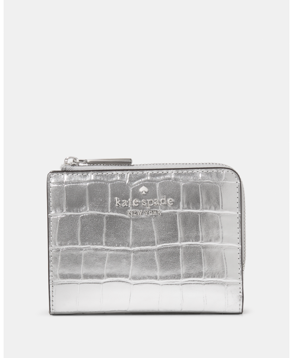 Kate Spade Womens Madison Croc Embossed Small L-zip Wallet - Silver...