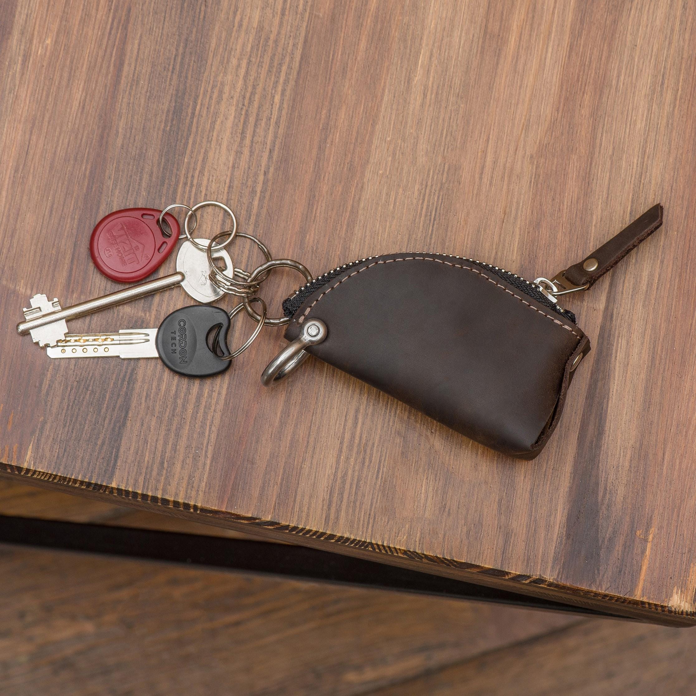 Leather key holder with zipper, Personalized key pouch, Custom key ...