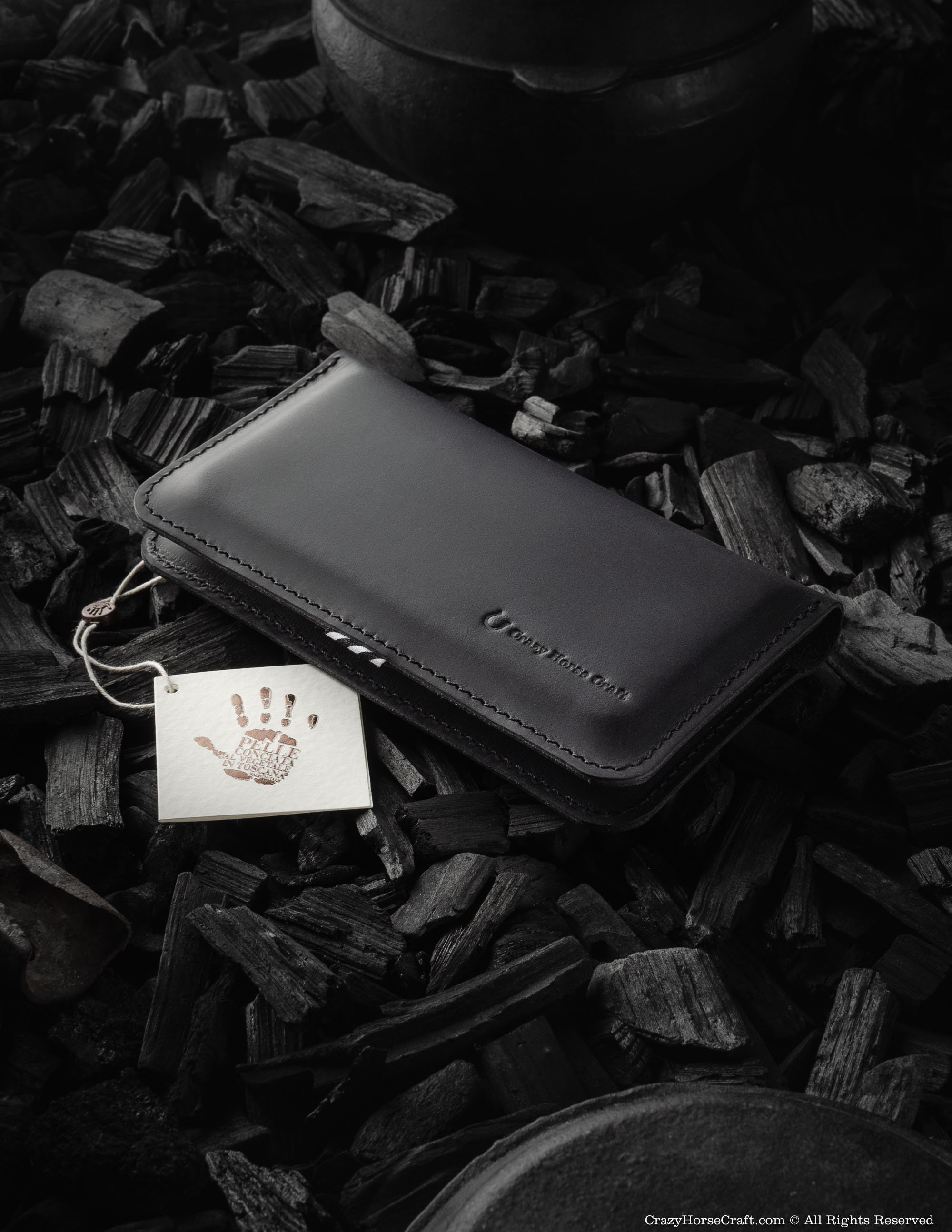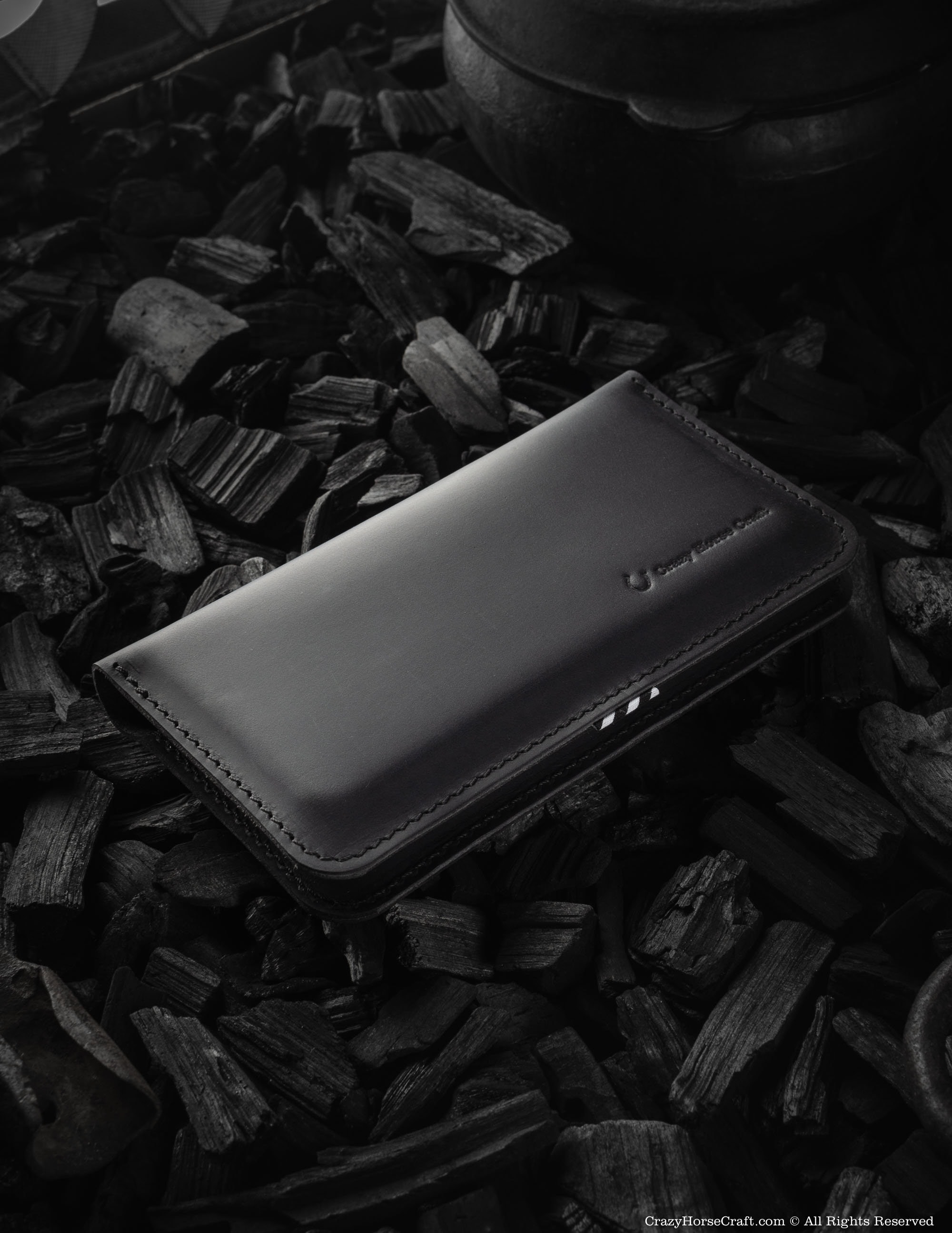 Black iPhone 17 16 case wallet for two phones 2 phone Crazy Horse l...