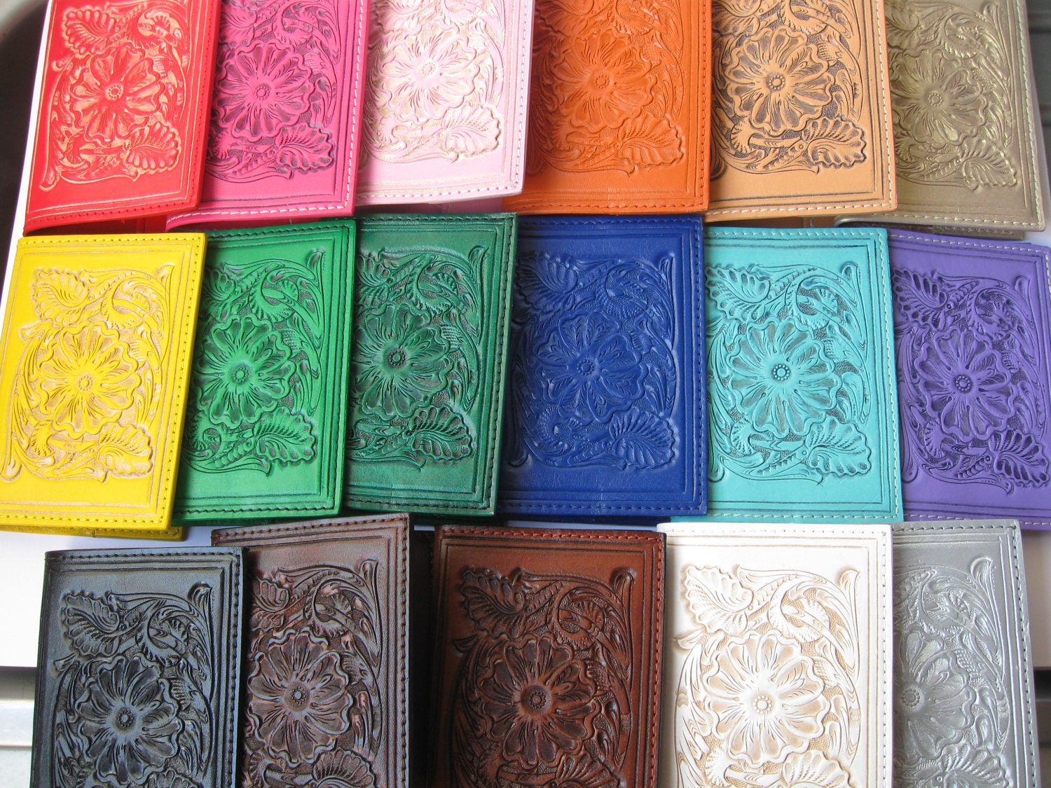 "This listing is for one hand tooled leather passport holder. You can choose between all the co...