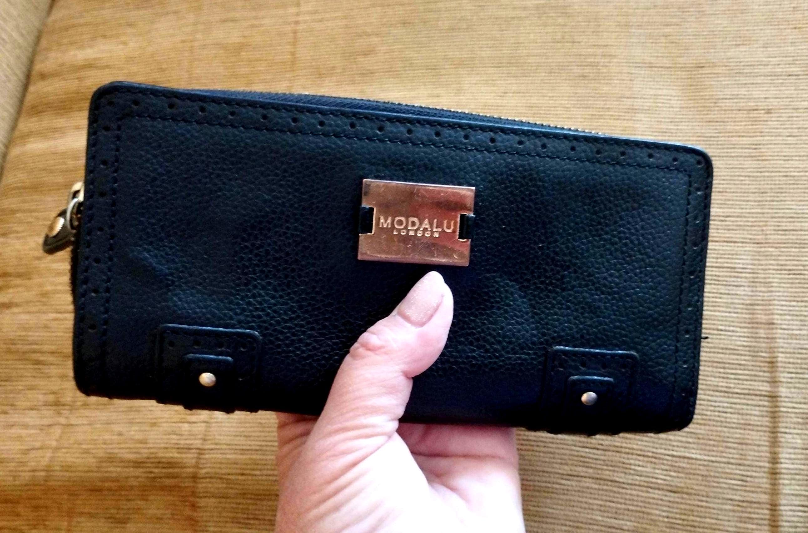 Vintage womens MODALU-LONDON black leather zip around. Wallet, Purs...
