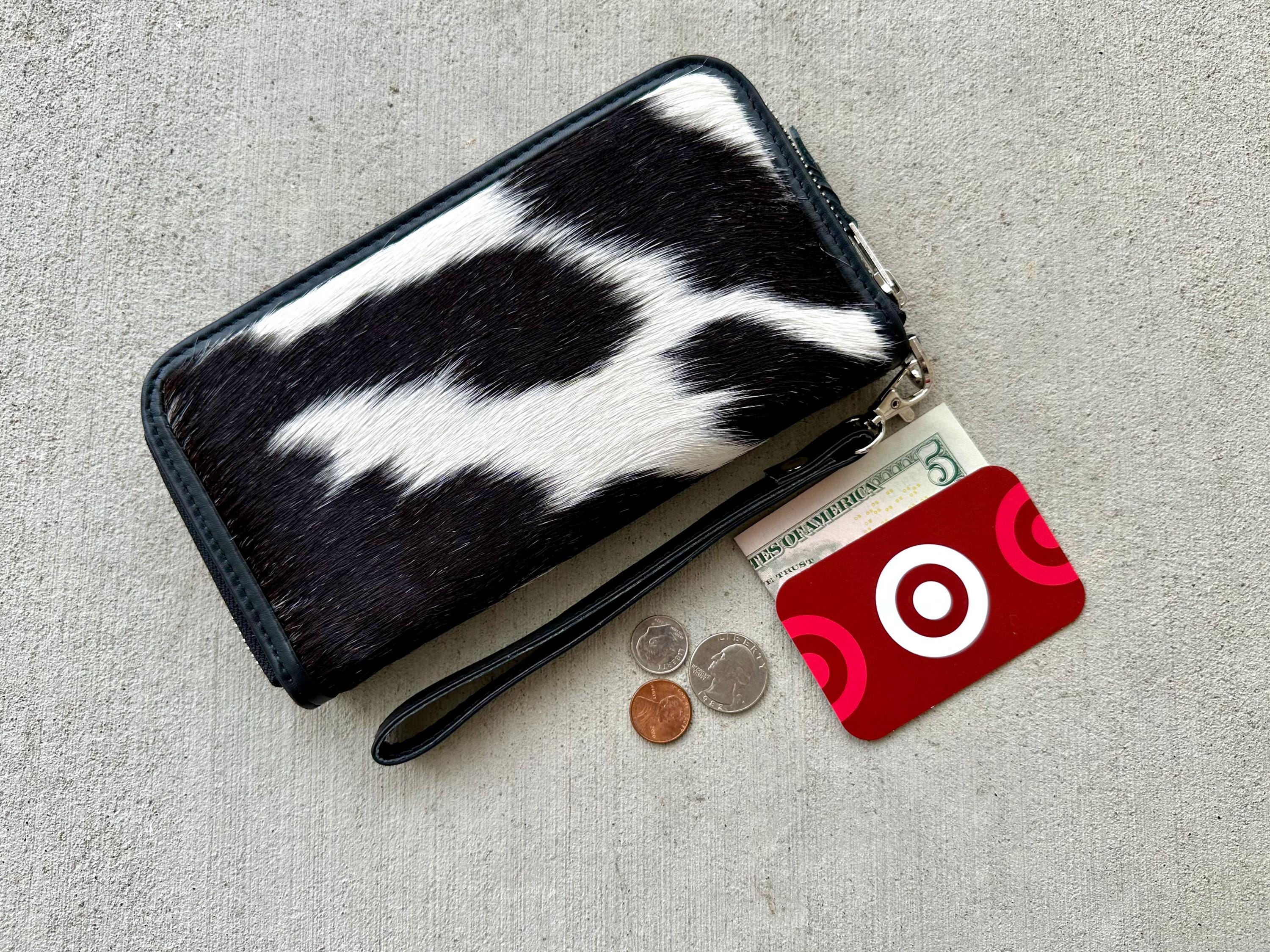 "Cowhide Wallet for Women Real Black Leather Zip Around Purse Clutch Wristlet Card Case | Cowgi...
