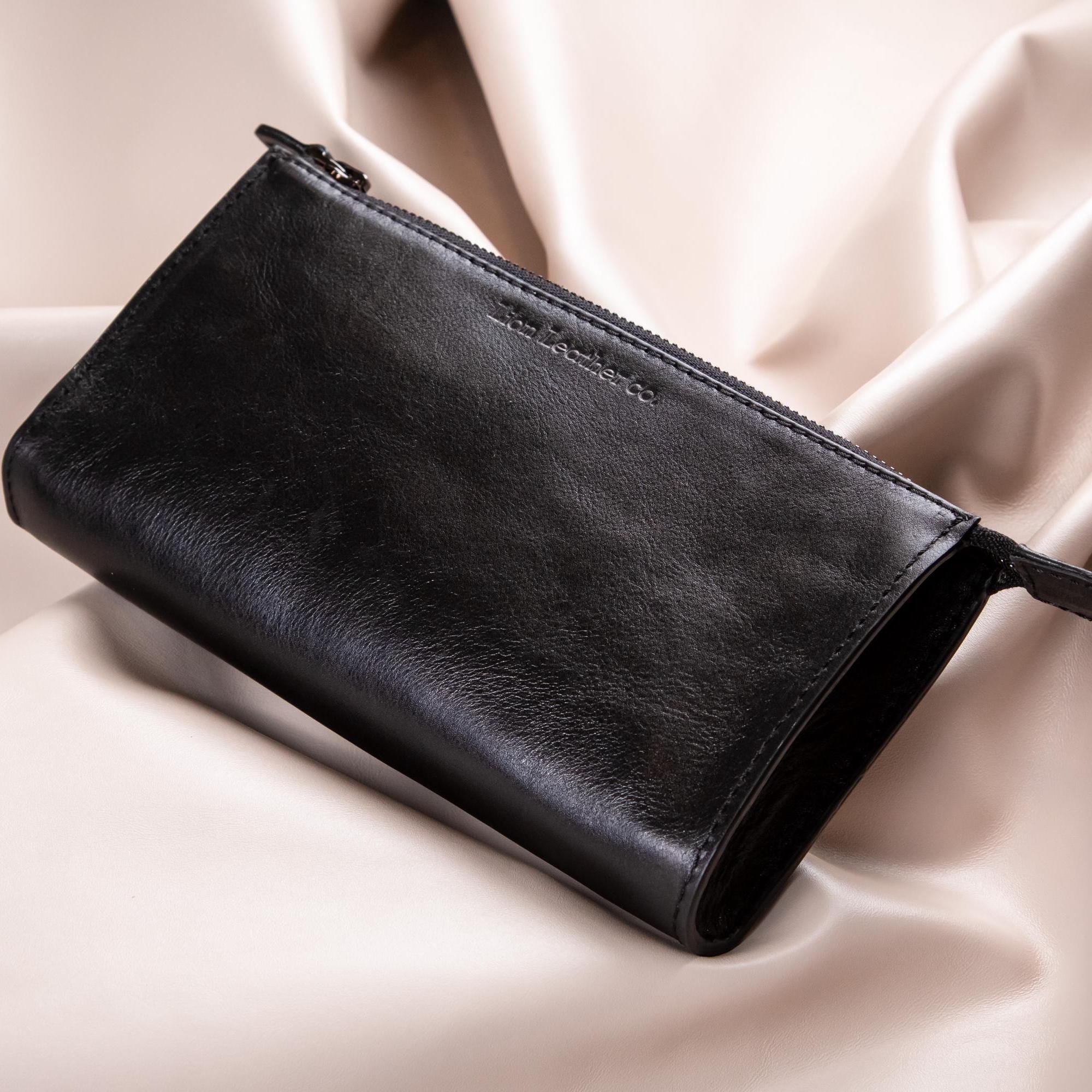 Men's clutch purse, full grain leather zip purse, large wallet, pou...