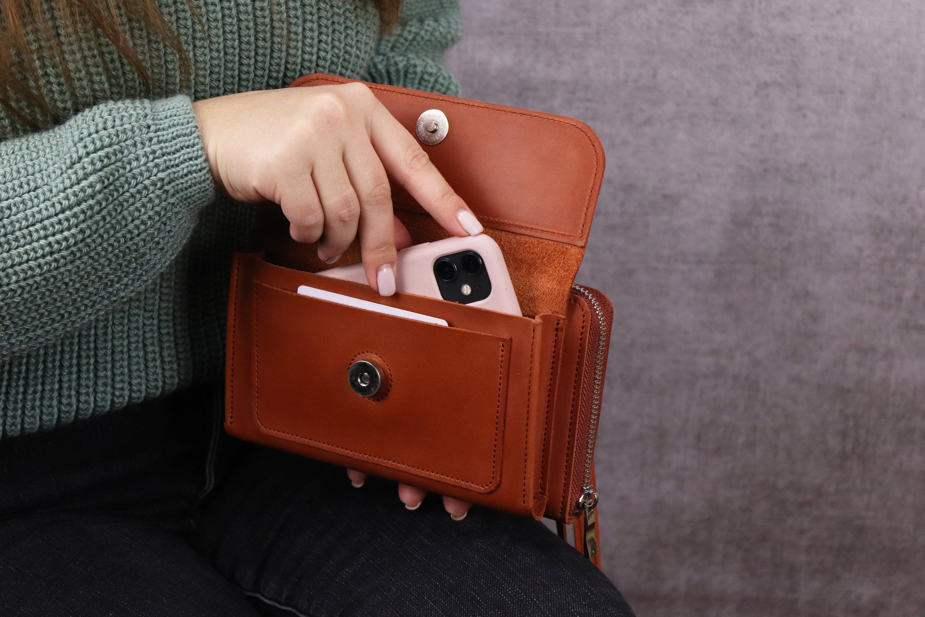 Handmade Shoulder Wallet for Phone and passport, Leather smartphone...
