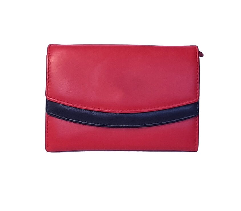 This red real leather purse is a medium sized purse which can take coins, bank notes and cards. It h...