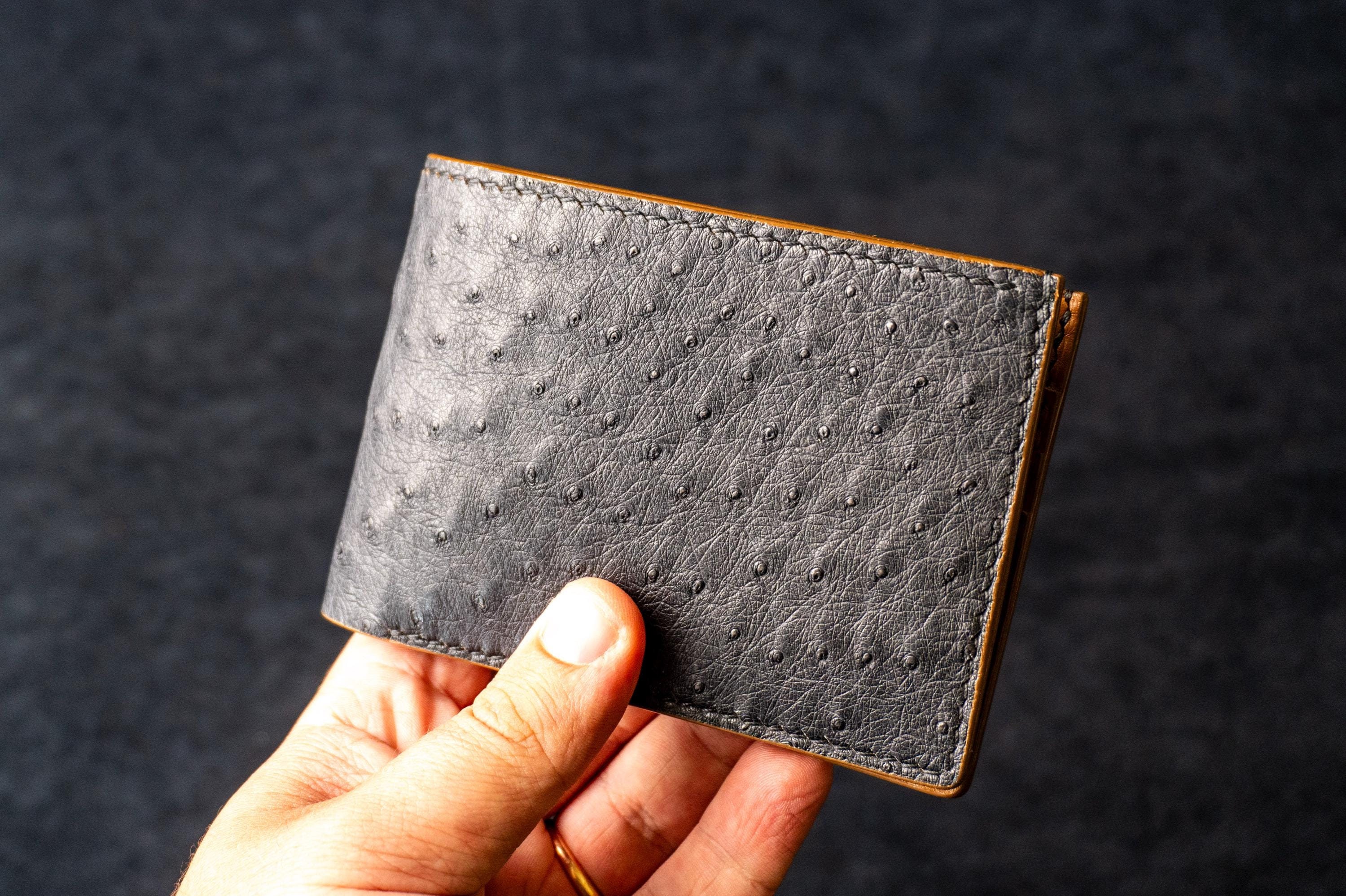 Genuine Ostrich Leather Bifold Wallet, Custom Mens Wallet Slim, Per...