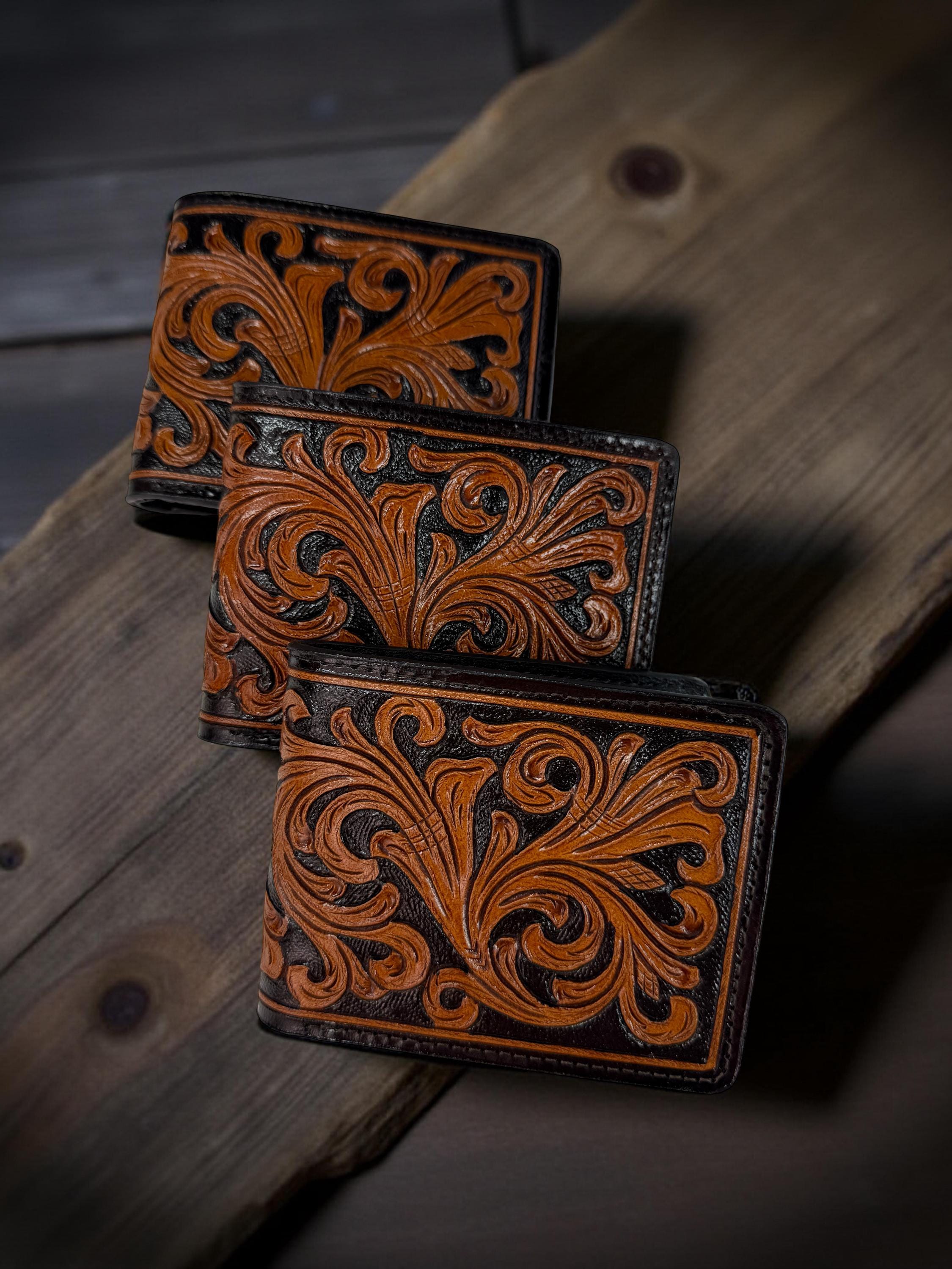 "Western Tooled Full-Grain Leather Bifold Wallet - Handmade & Built to Last Rugged charm me...