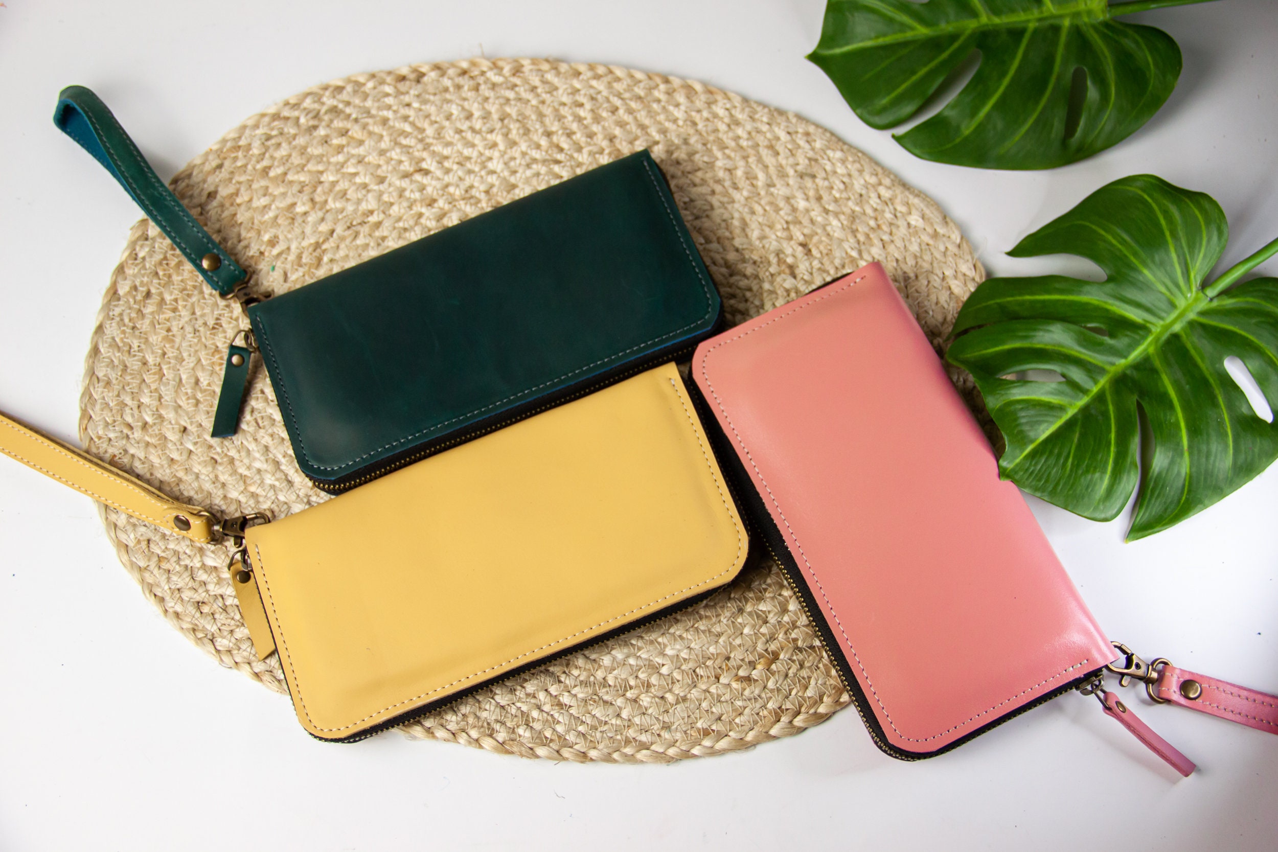 Leather zipper wallet women,Wristlet wallet leather,Zip around wall...