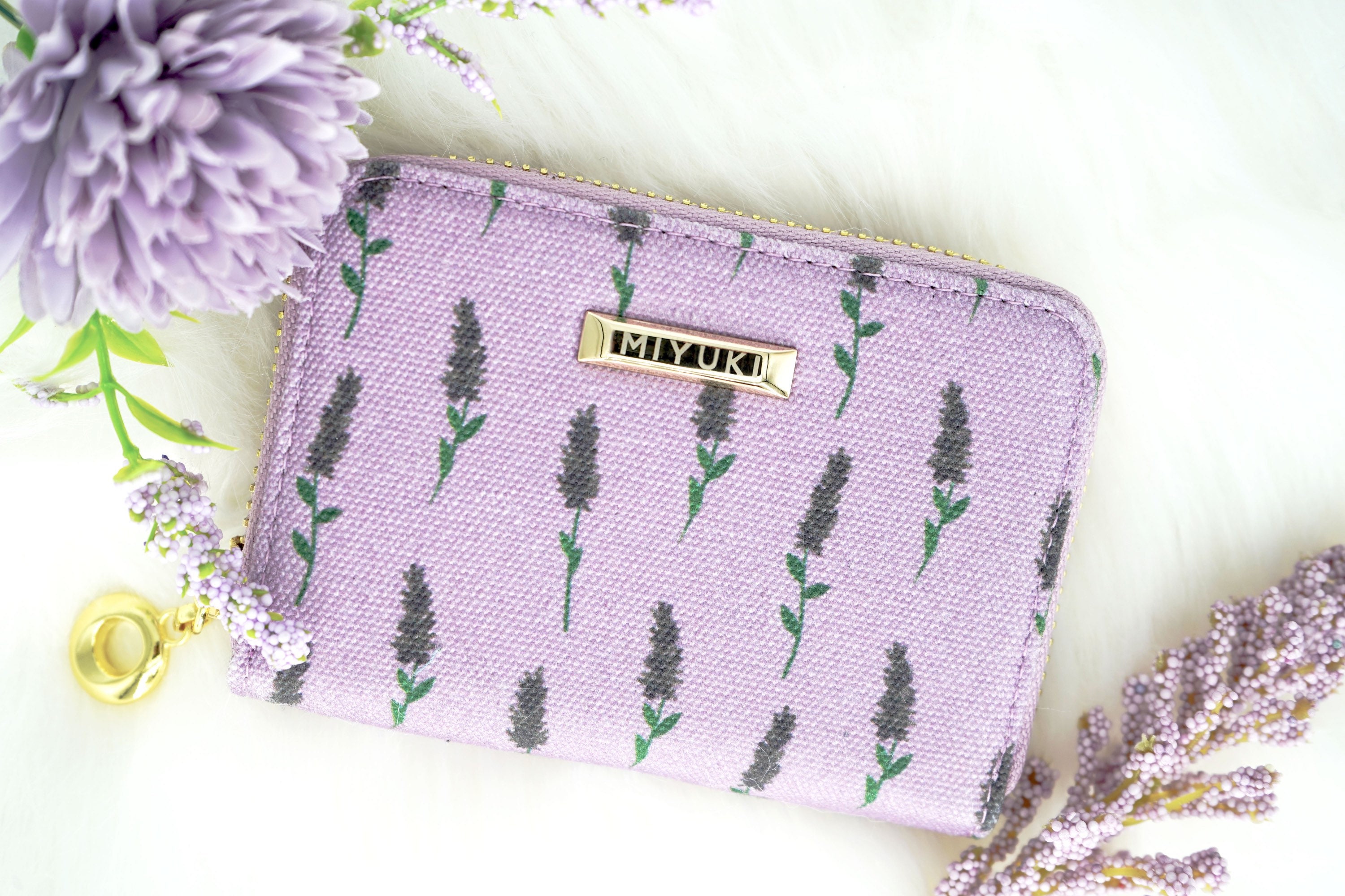Lavender Lilac Genuine Leather purple Canvas Wallet OnSale Women Fl...