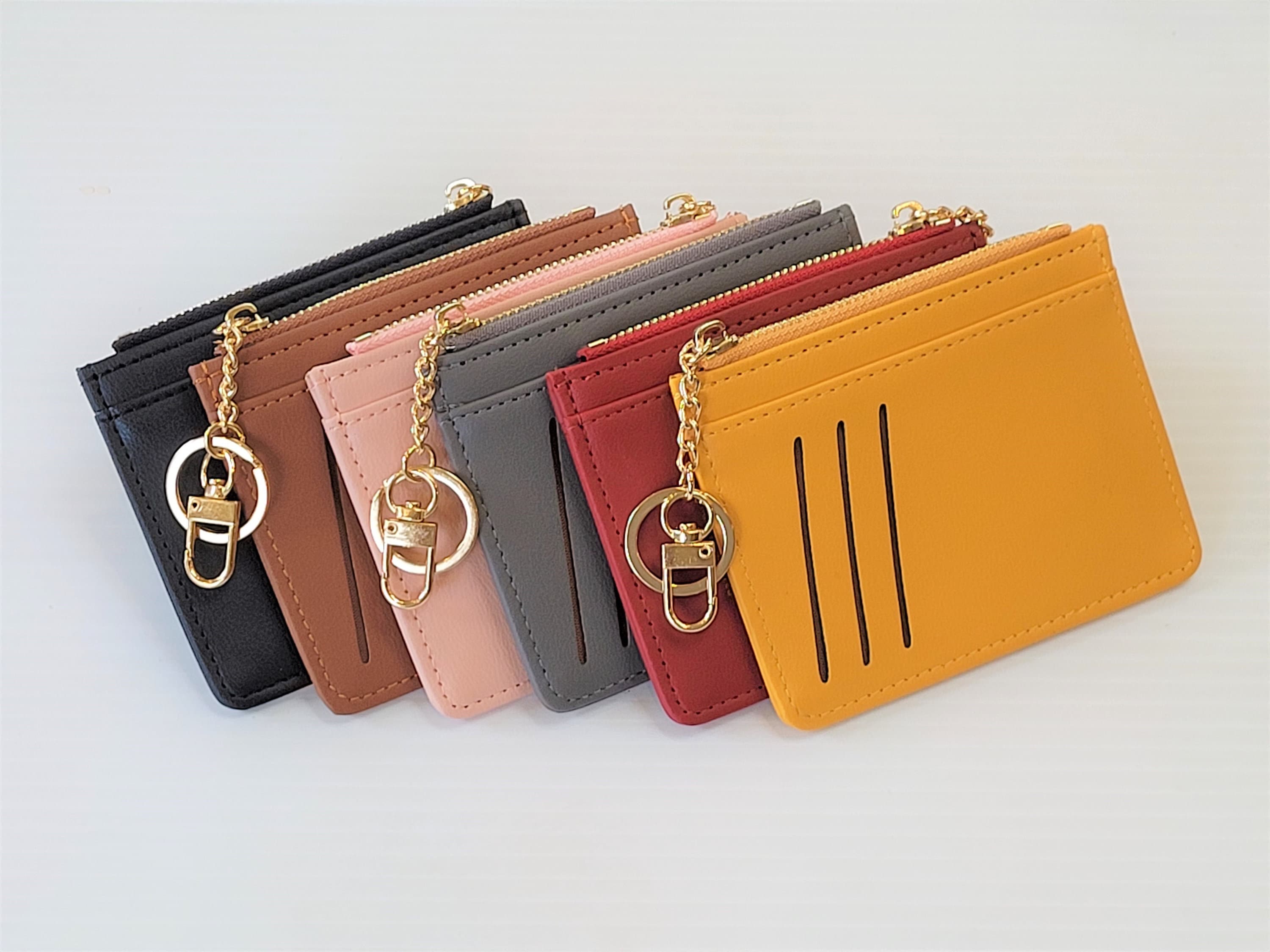 Vegan Leather Slim Zip Card Holder Wallet / Purse with Key Chain - Multi Colours Accessorise your lo...