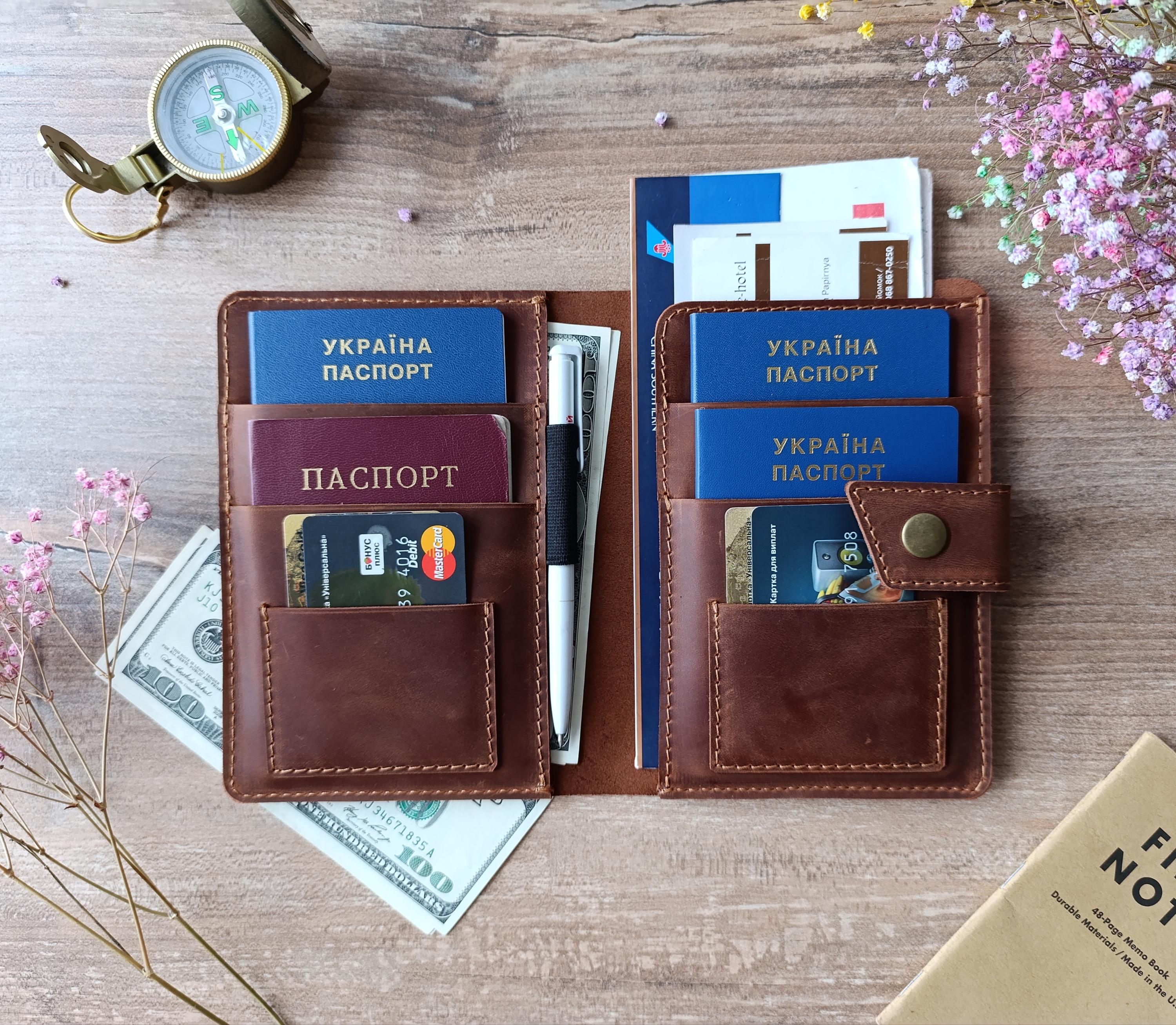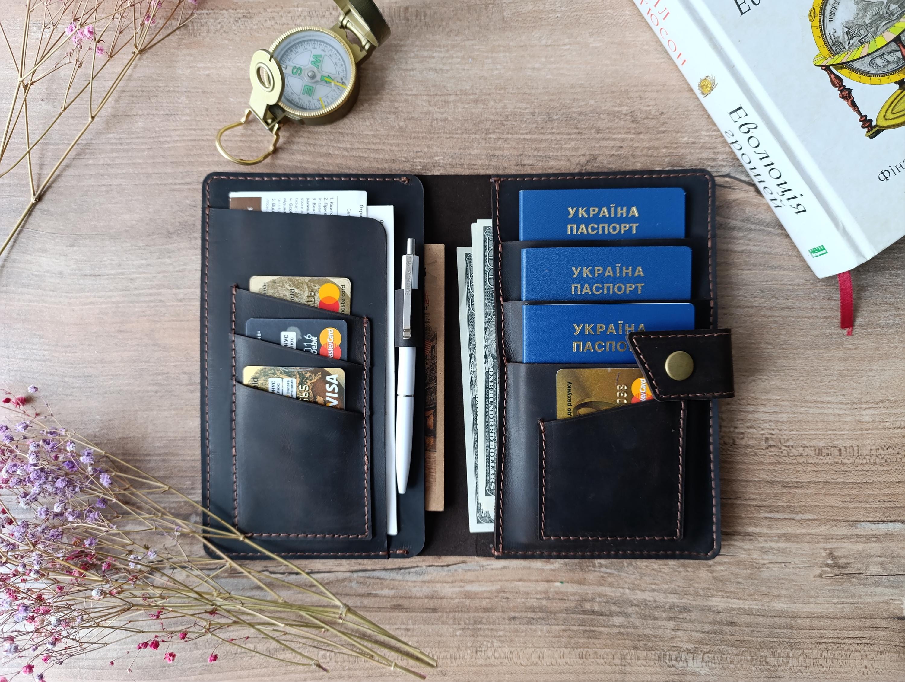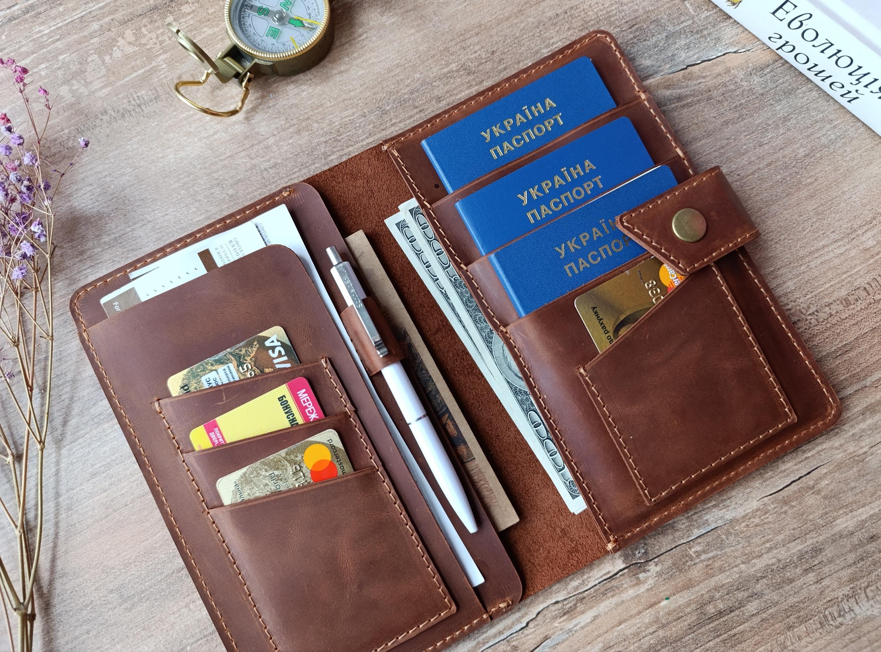 Family passport holder, Leather travel wallet, Leather passport hol...