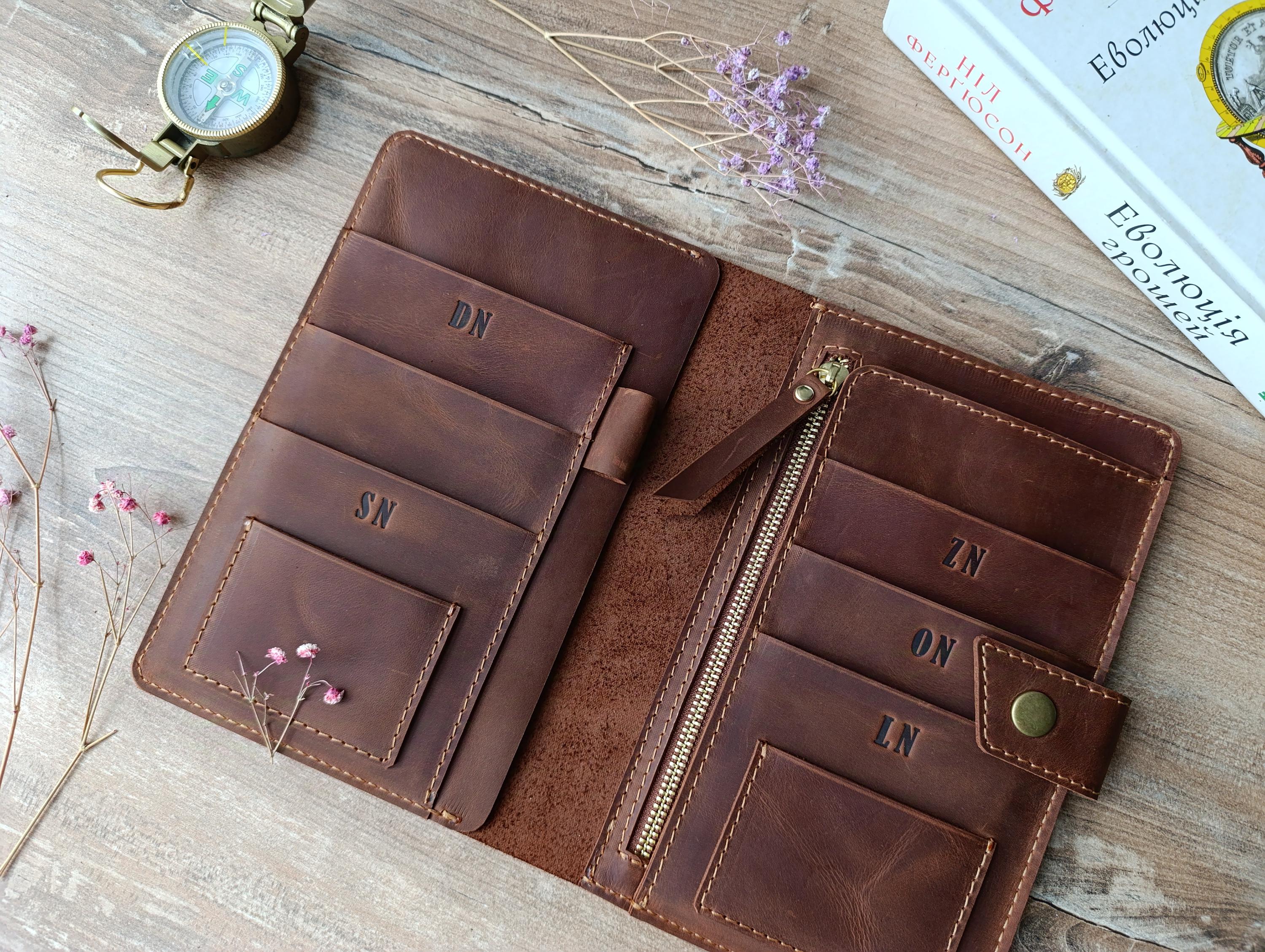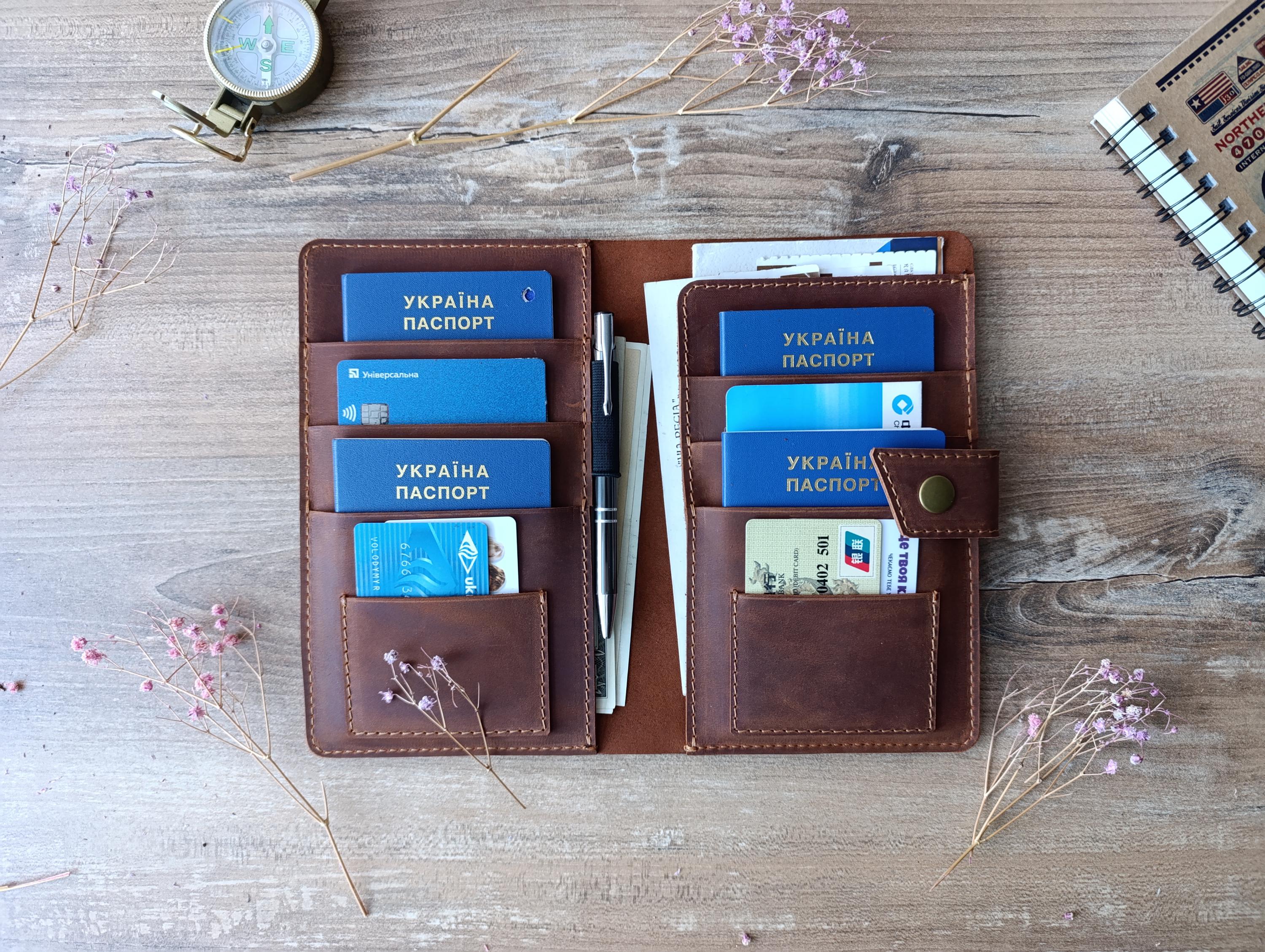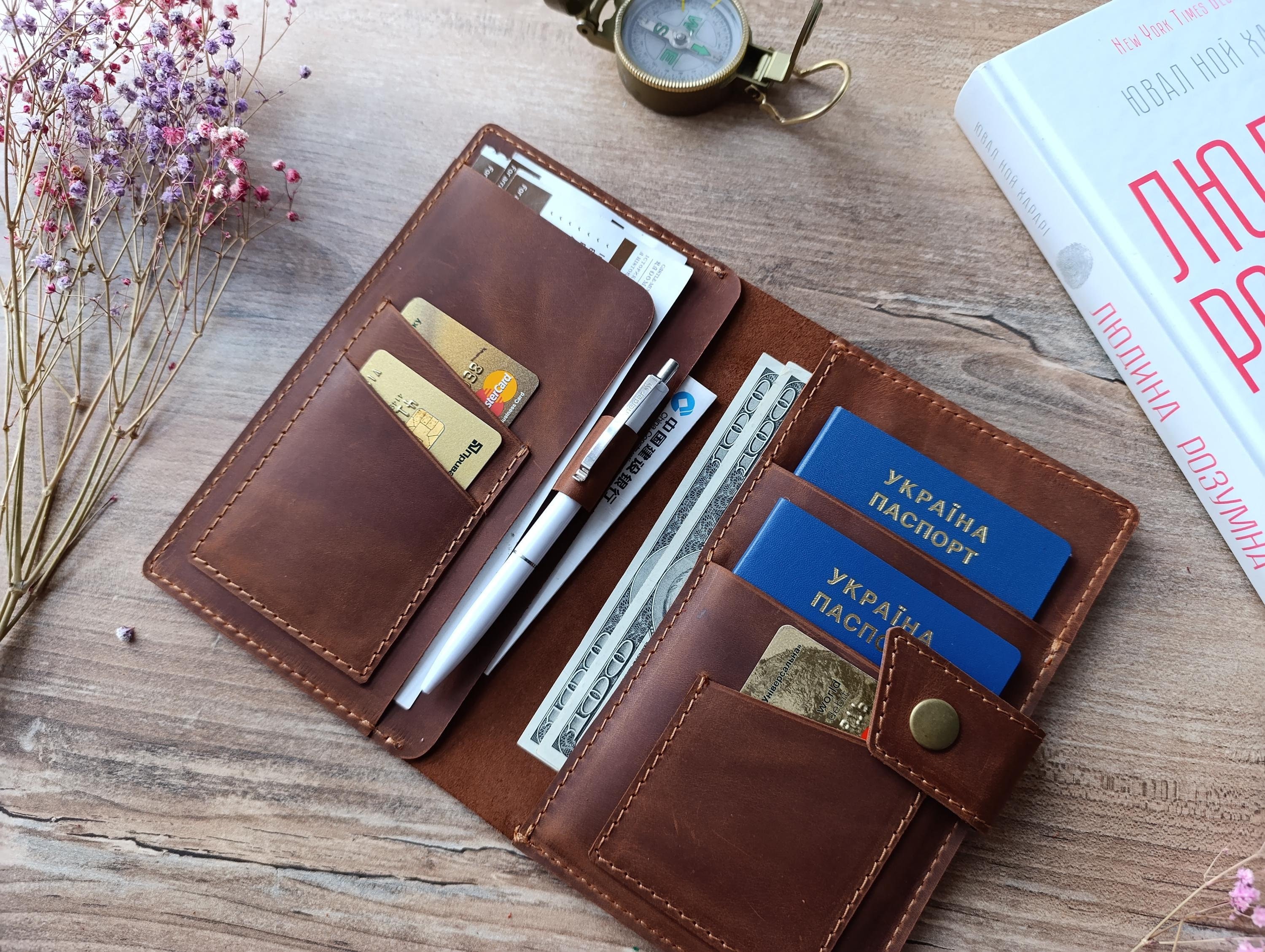Family passport holder, Leather travel wallet, Leather passport hol...