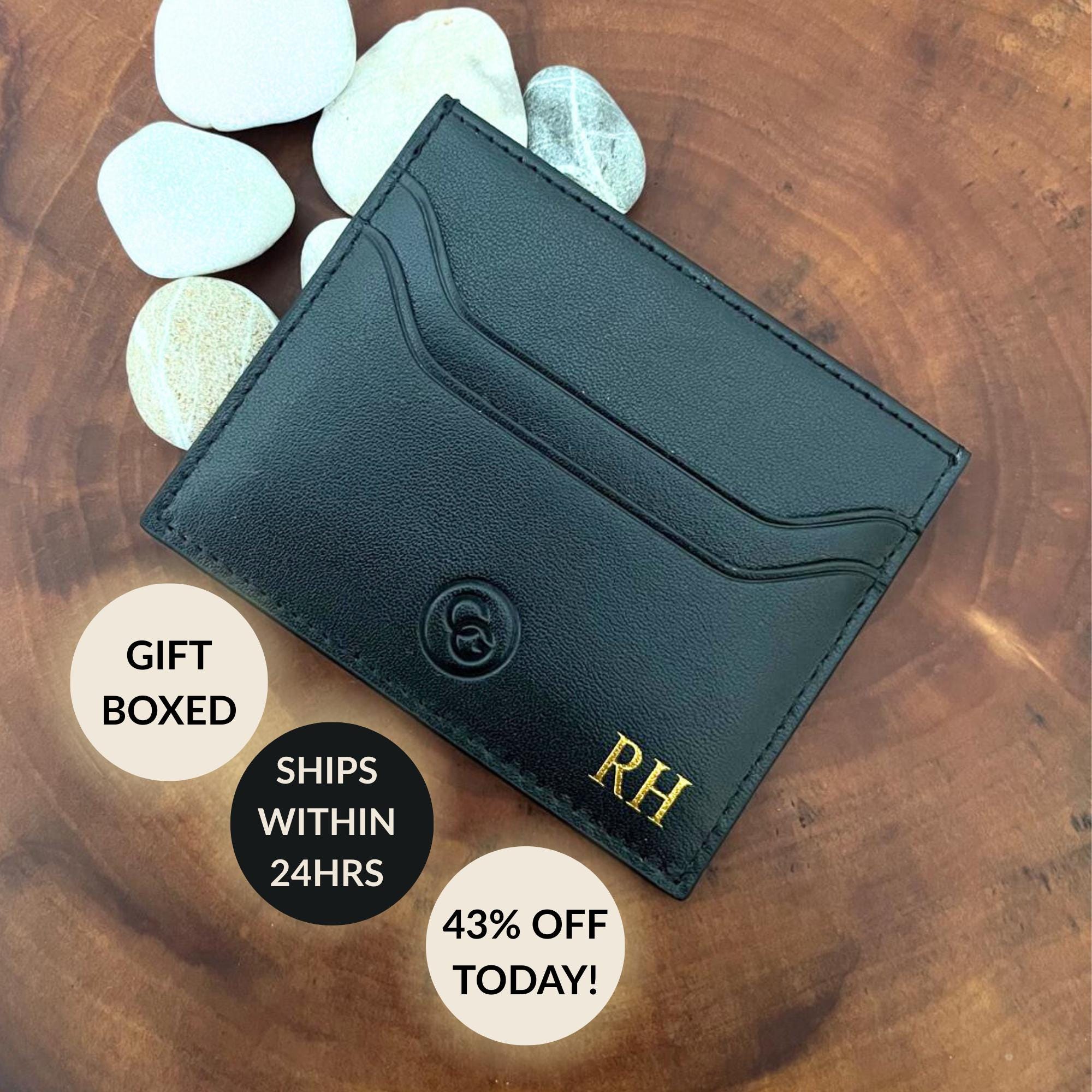 Personalized Leather Card Holder Custom Initials Embossed Leather C...