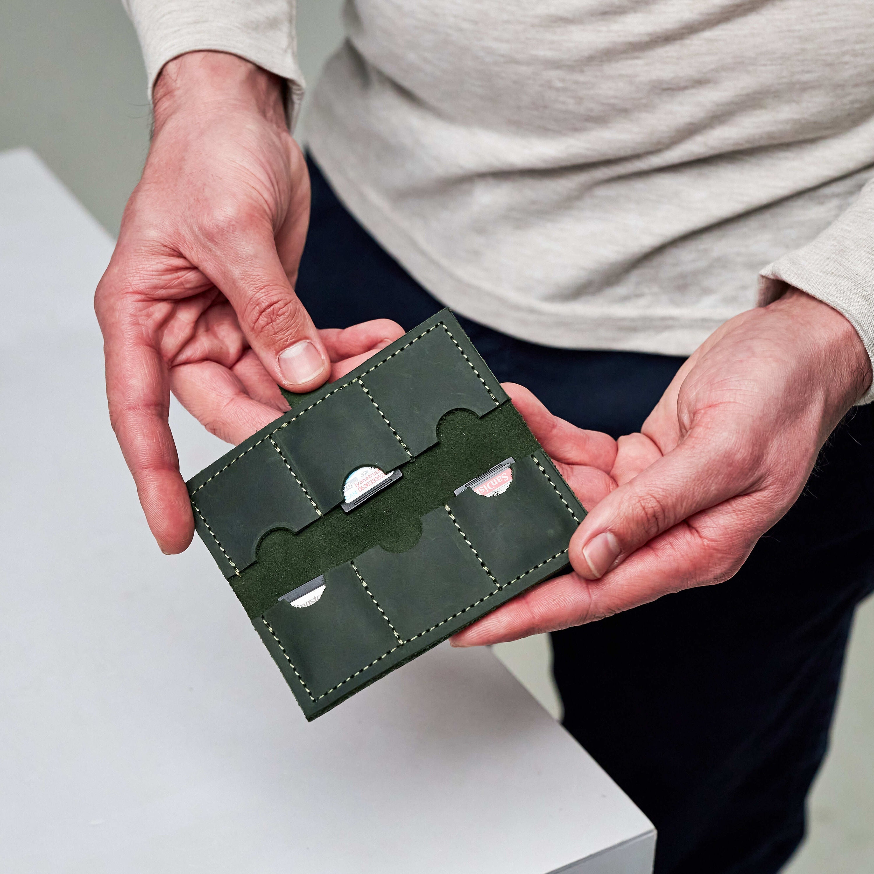 Leather memory card case, Custom memory card holder, SD card holder...