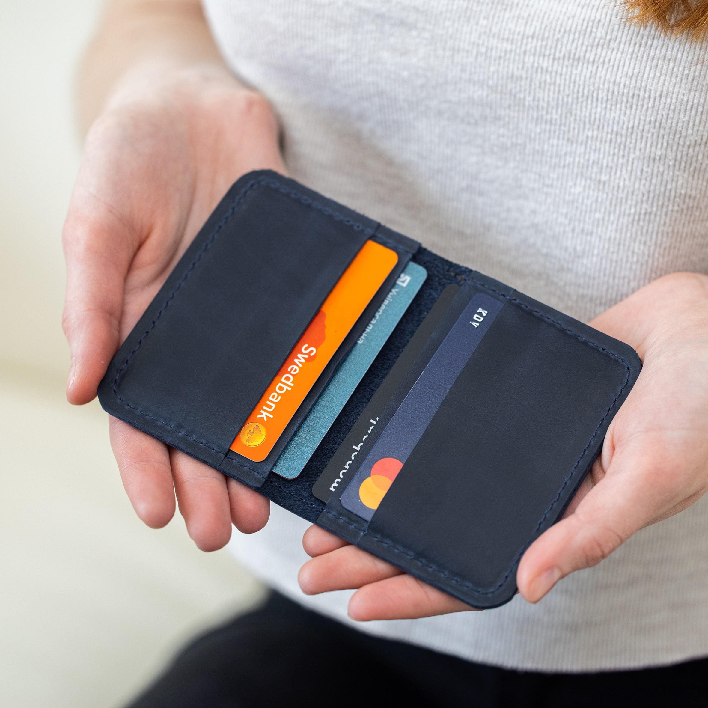 Engraved leather card holder, Slim leather credit card holder, Pers...