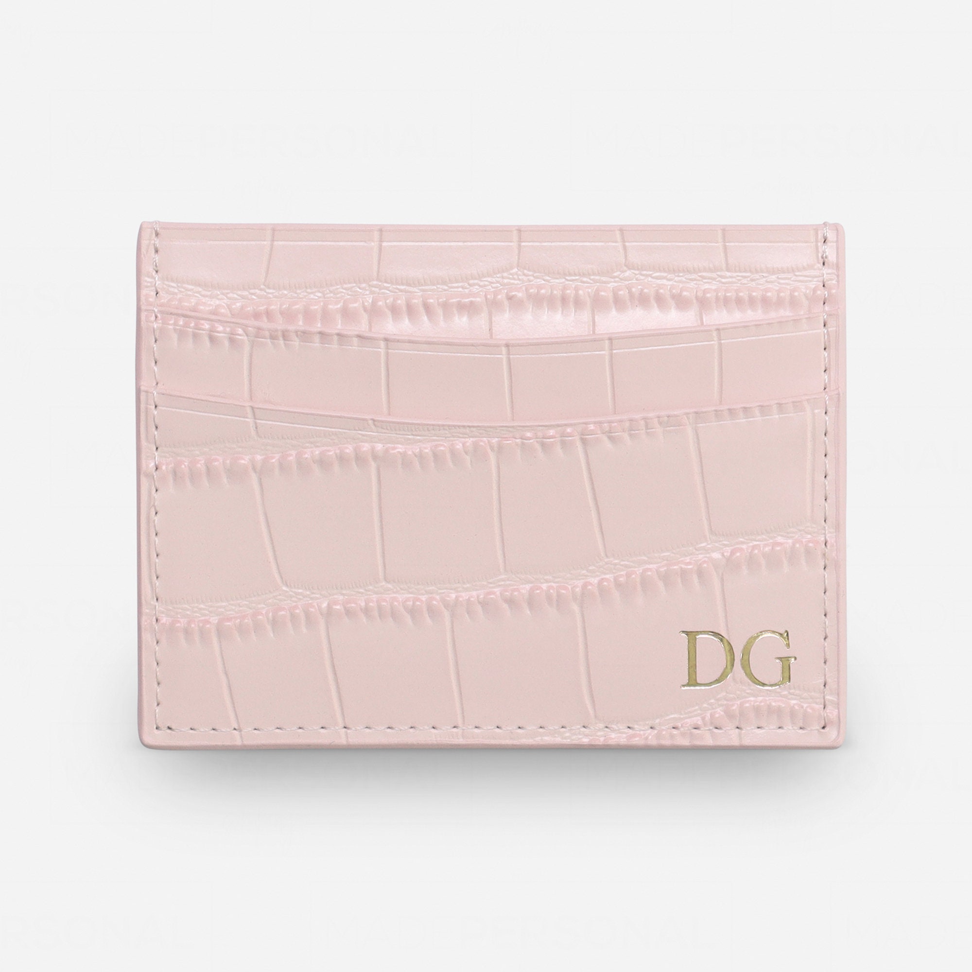 Personalised Croc Leather Card Holder, Pink Leather Monogrammed Cre...