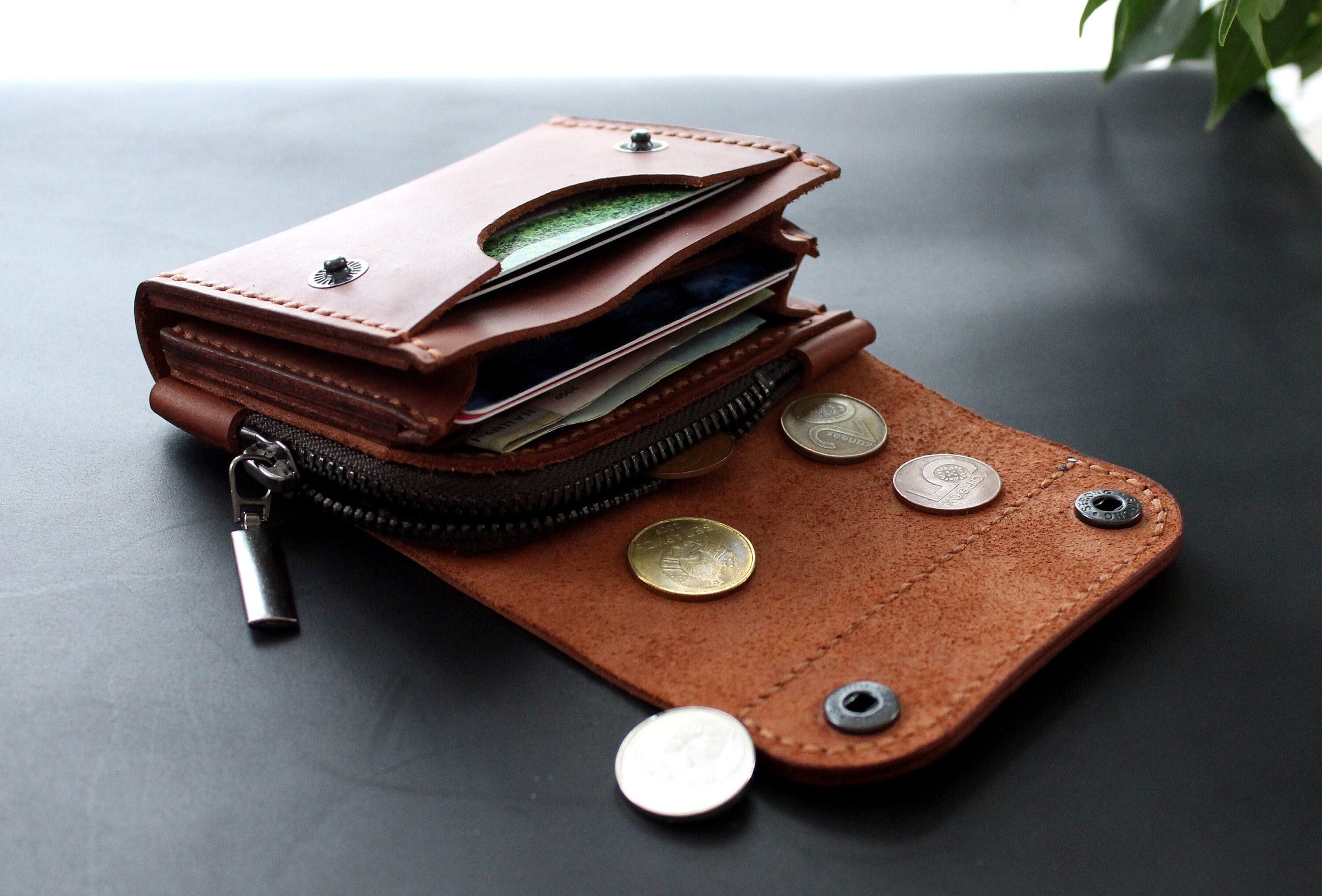 Real Leather wallet Small wallet Personalized wallet Front pocket w...