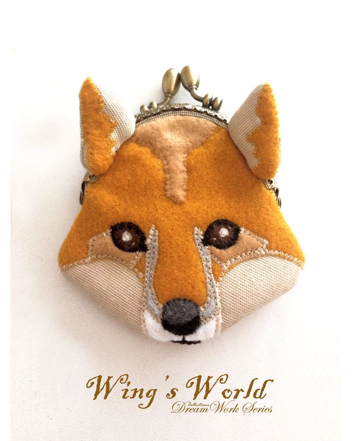"Handmade FOX patchwork coin purse, it is made by high quality cotton and soft felt, closes wit...