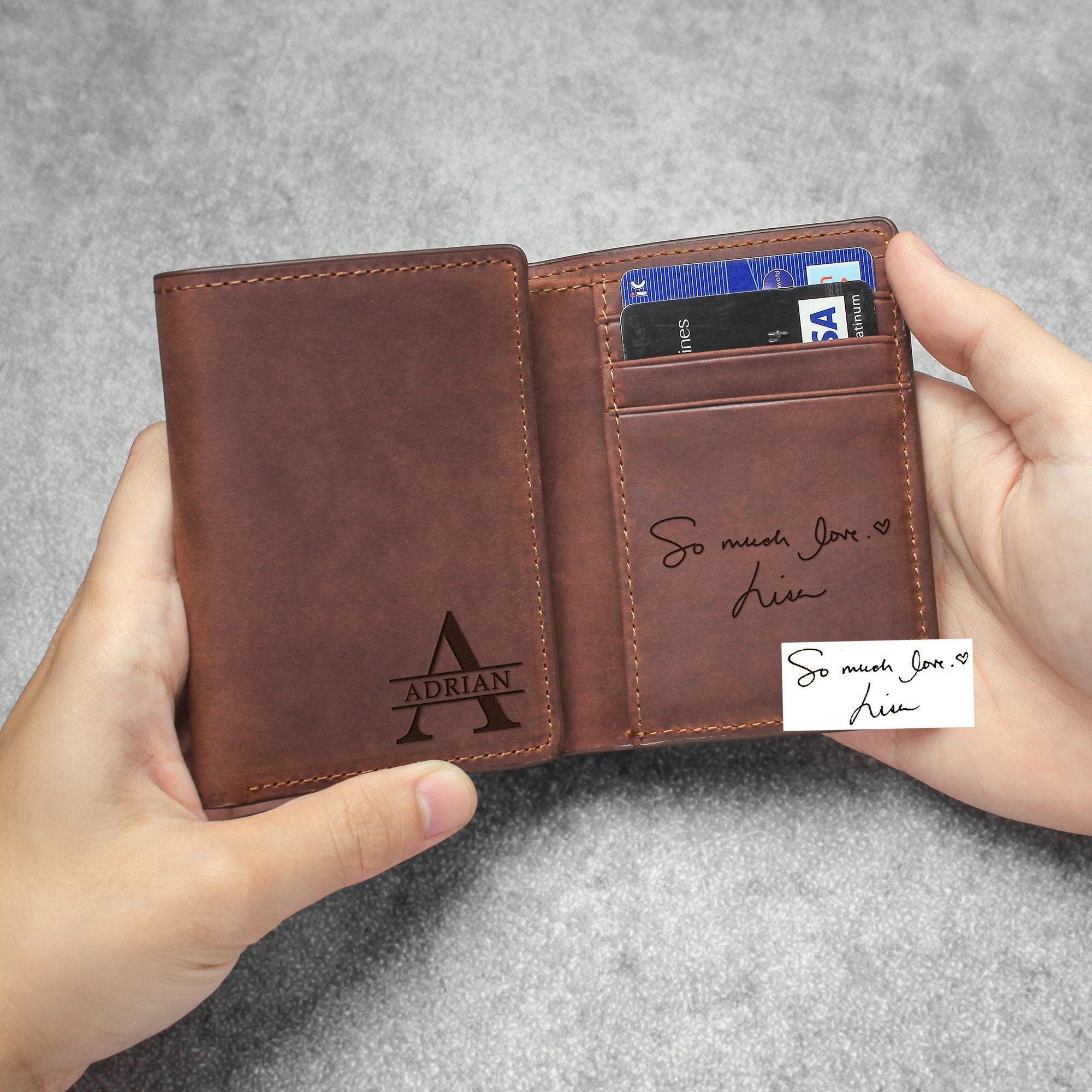 Trifold Wallet Men, Valentines Gift For Him, Handwriting Wallet Men...