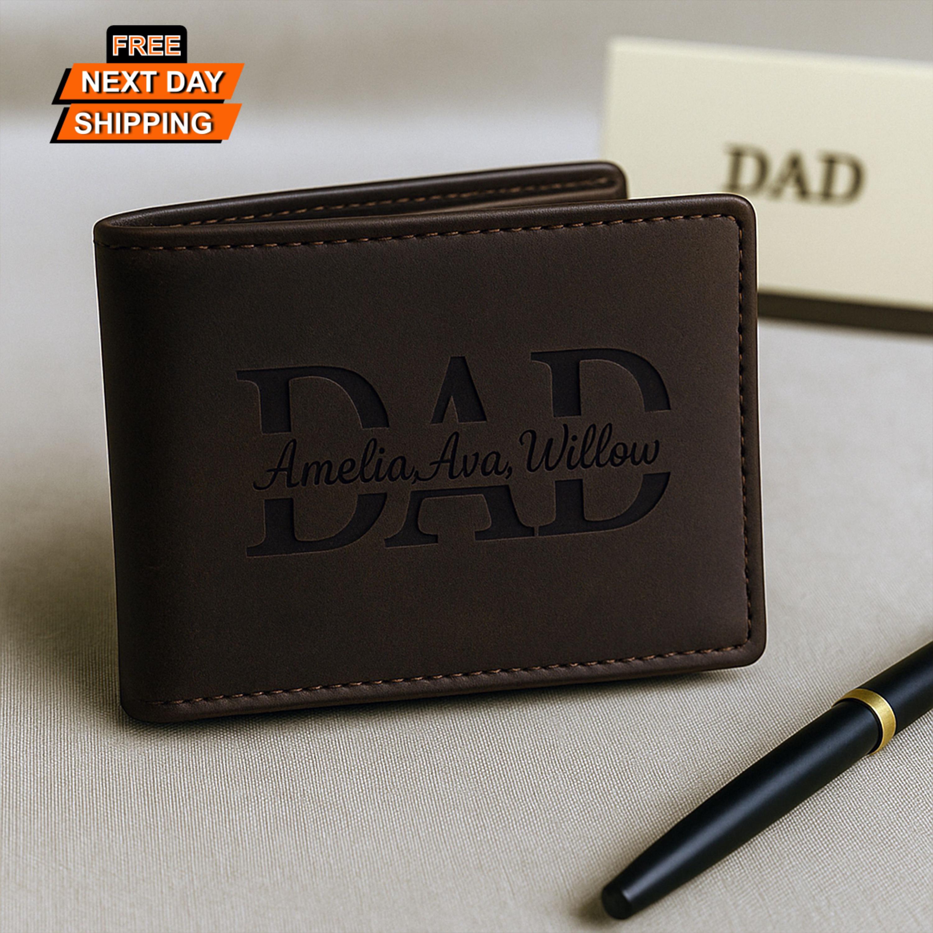 Personalised Dad Leather Wallets, Engraved Dad Wallet with Kids Names, Fathers Day Gifts, New Dad Gi...