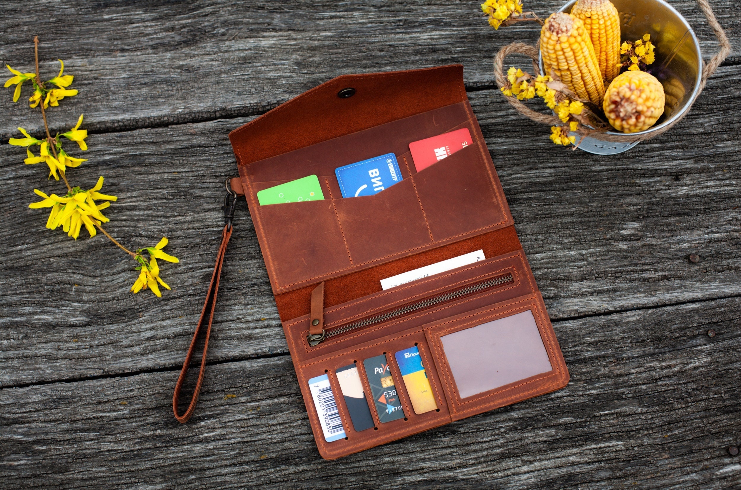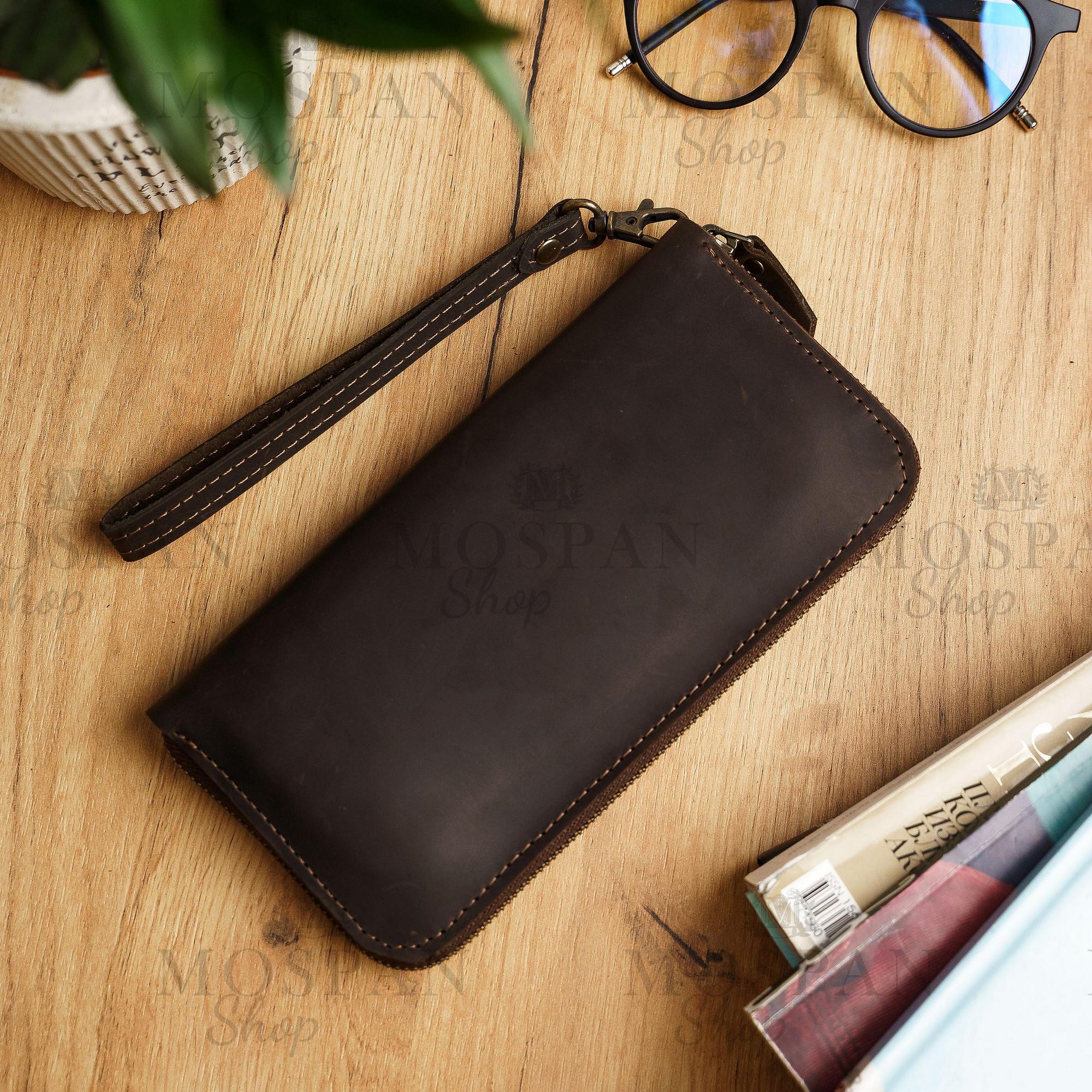 Wristlet wallet with strap,Leather wristlet clutch,Personalized lea...