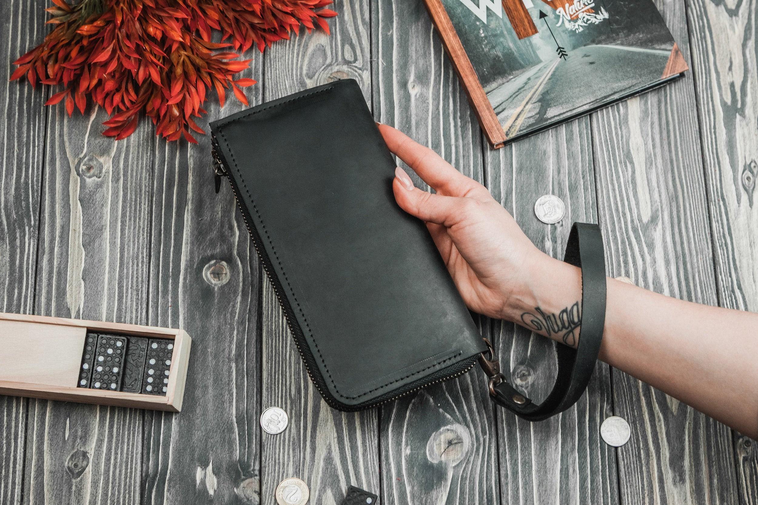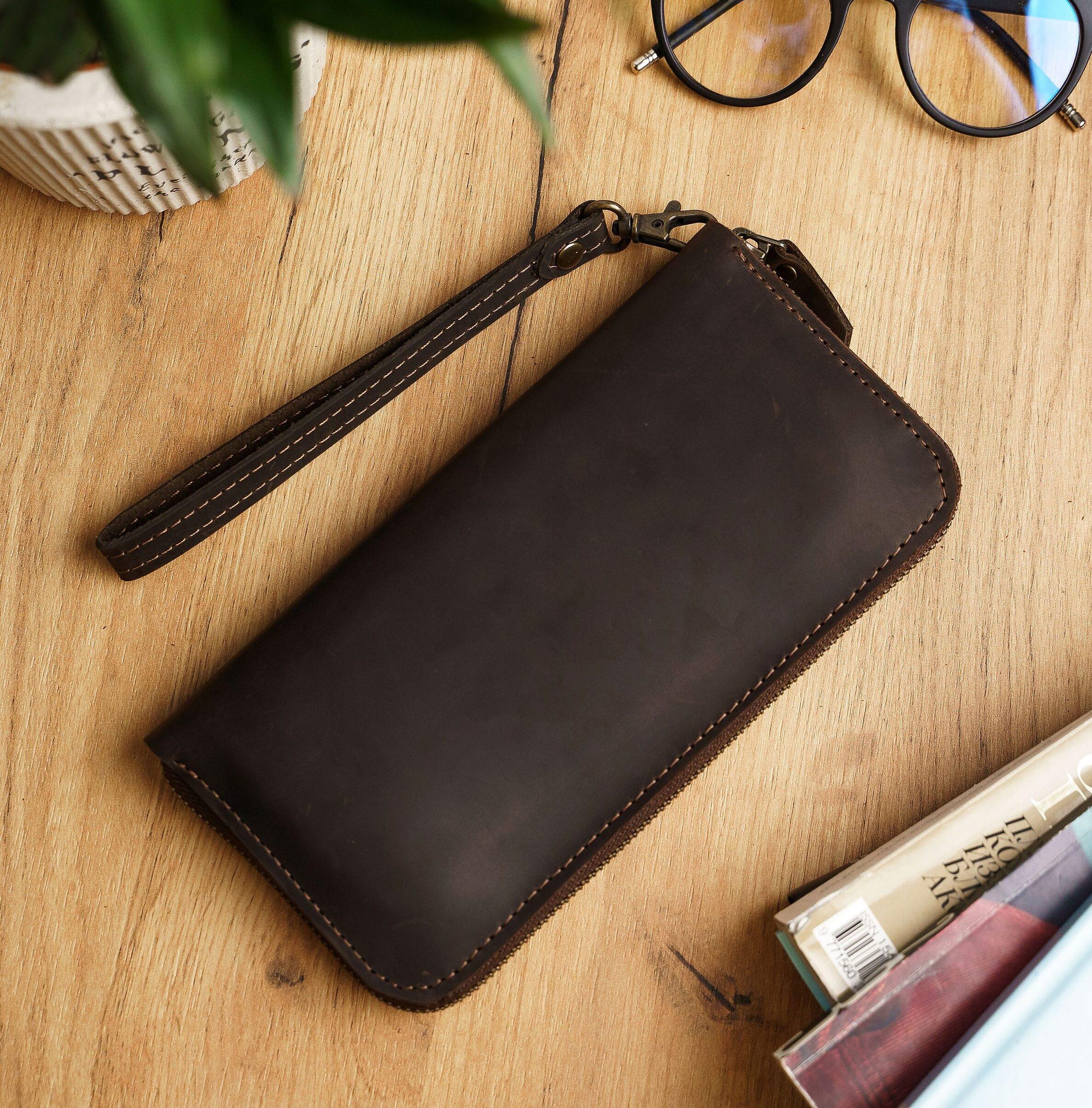 "Leather wristlet wallet phone holder, Leather wristlet purse men, Leather wristlet clutch men,...