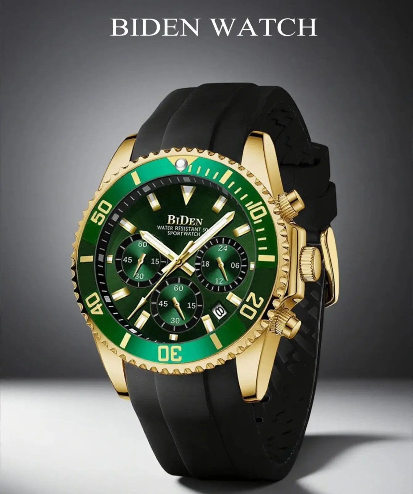 BIDEN Classic Green Watch For Man Fashion Casual Rubber Strap Wrist Watch Men With Calendar Reloj Ho...