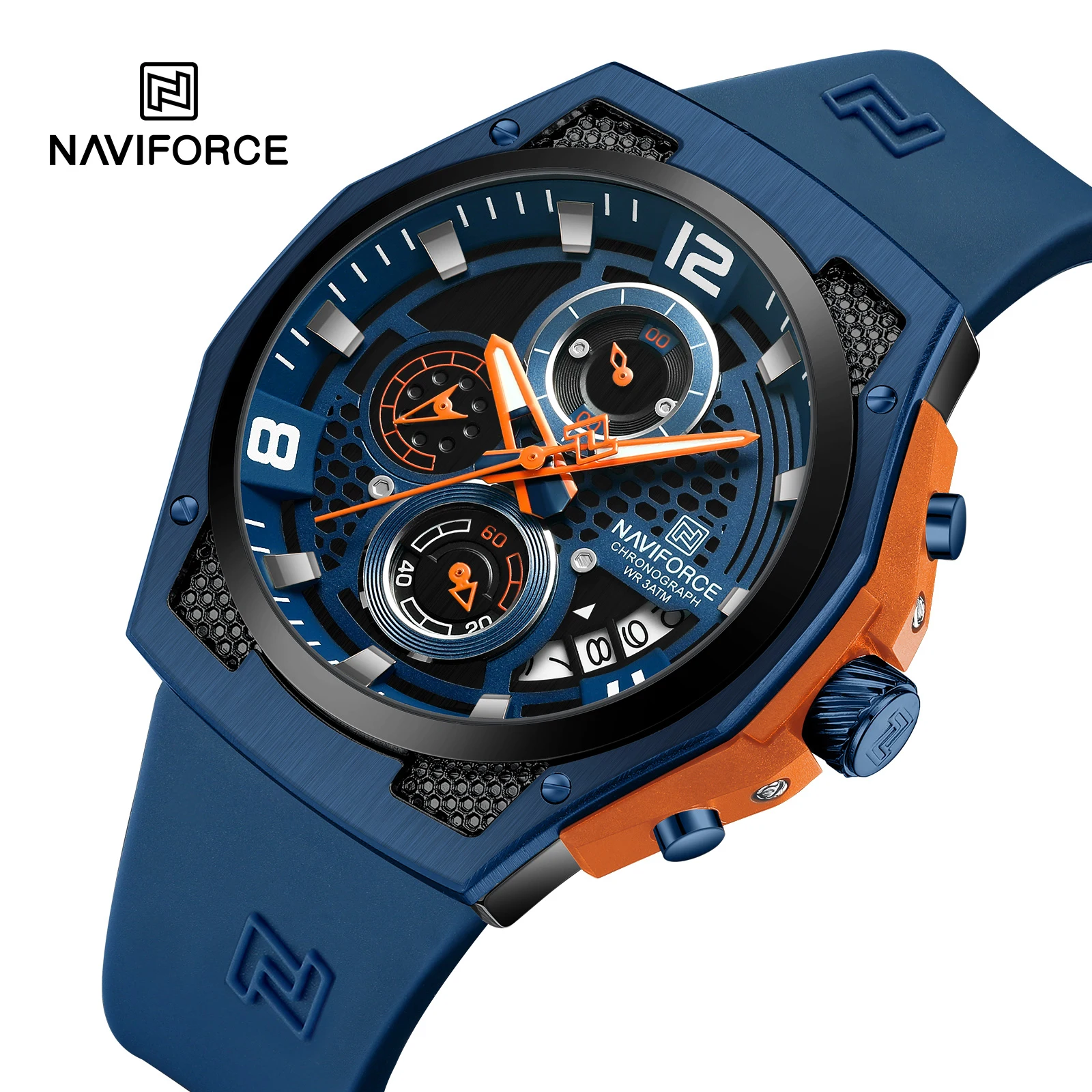 NAVIFORCE Men‘s Watches 2025 New Silicone Strap Quartz Calendar Waterproof Fashion Sport Chron...