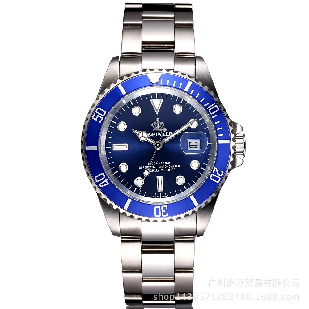 REGINALD Crown quartz male watch business casual men's Steel calendar Japan waterproof calendar High...