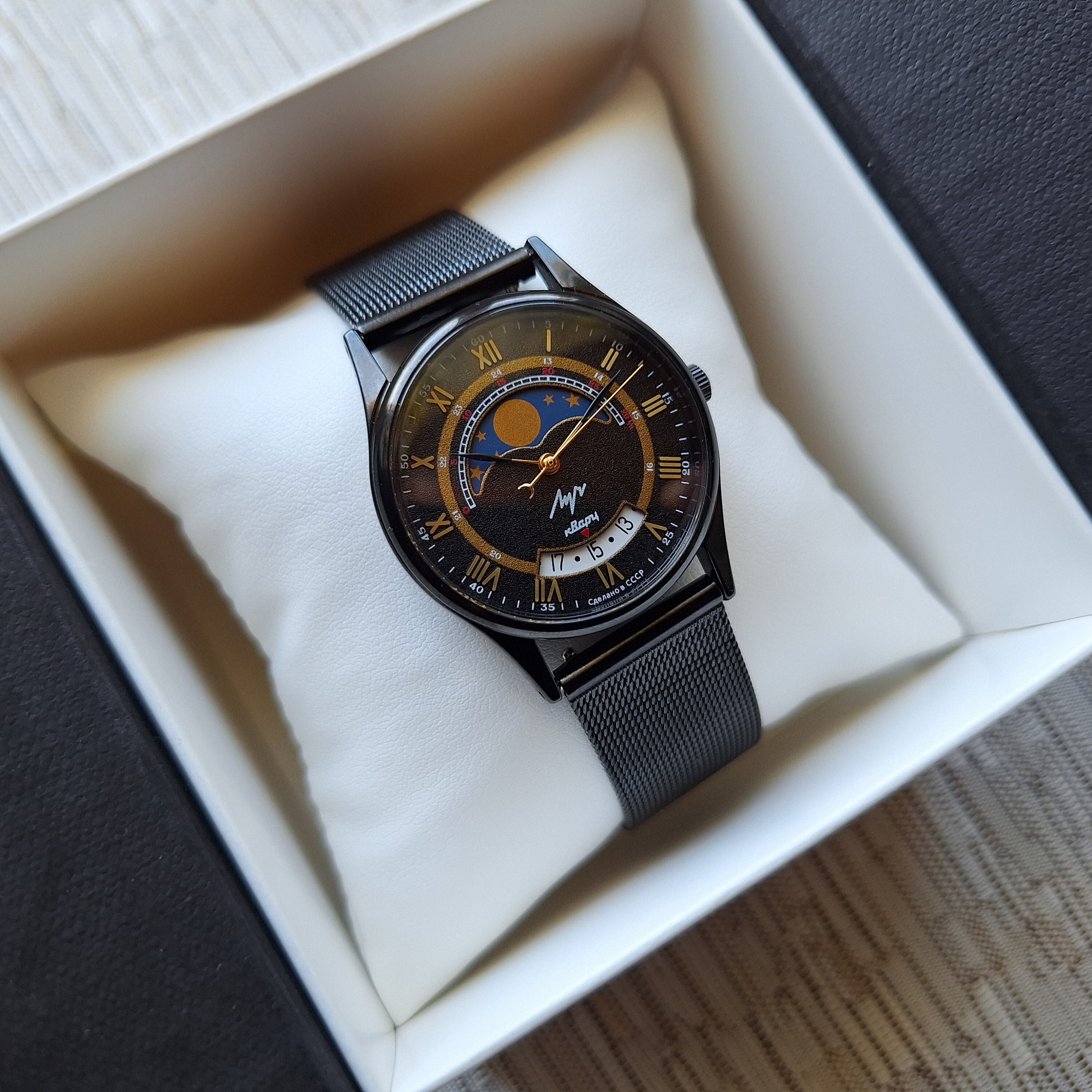 • NEW Quartz watch LUCH with Real Moon Phases Calendar, Moon phase wa...