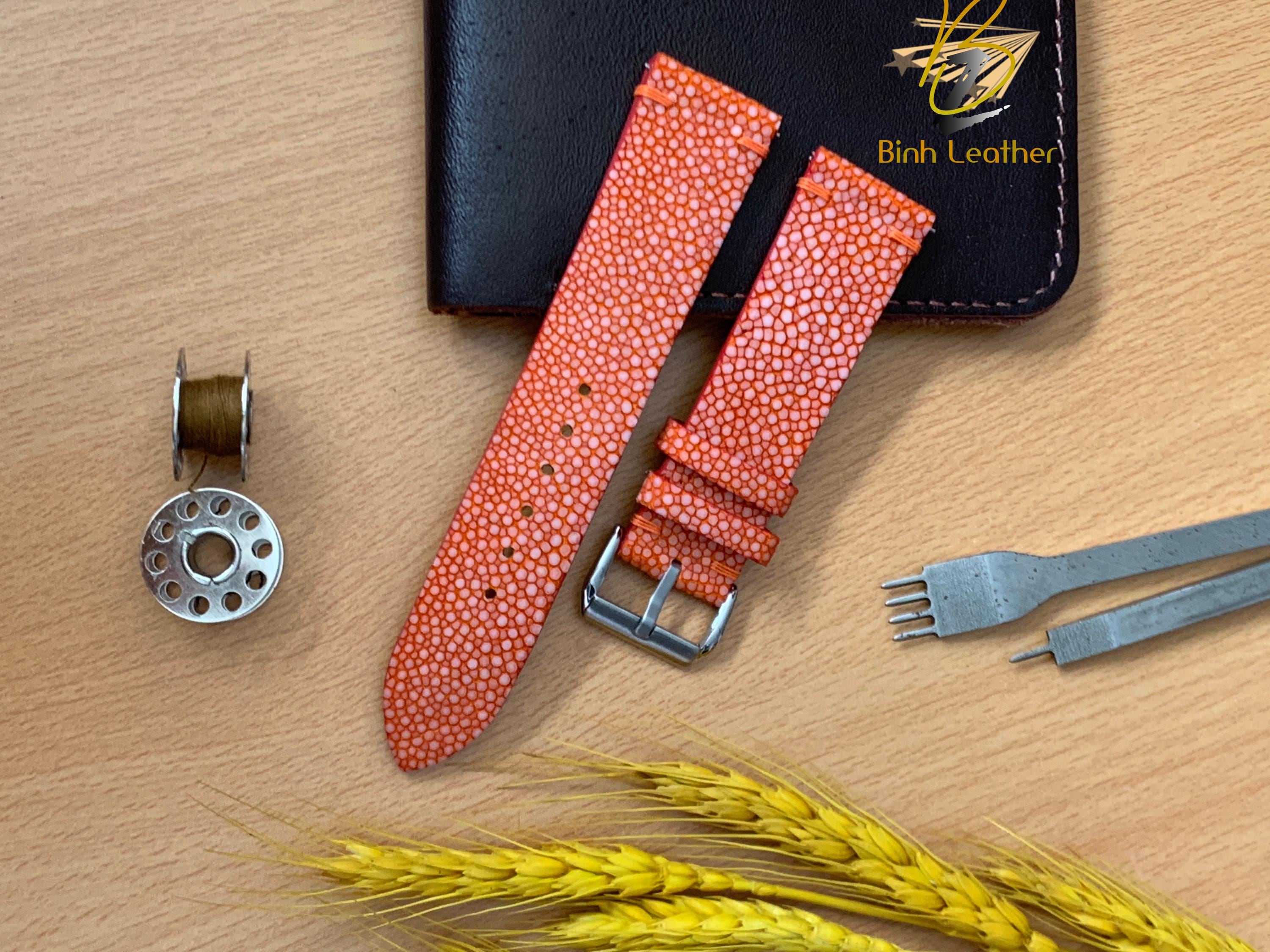 Orange Stingray Leather Watch Strap, Custom Watch Band, Vintage Wat...