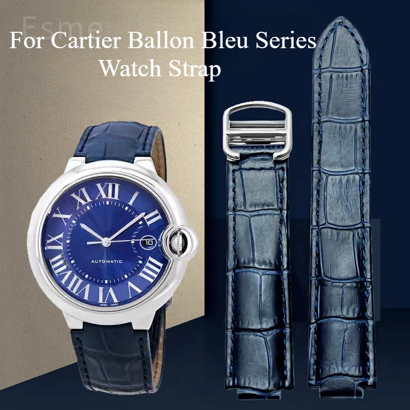 Genuine Leather Watch Band for Cartier Blue Balloon Cartier Wsbb0025 Raised Mouth Men'sWomen's Strap...