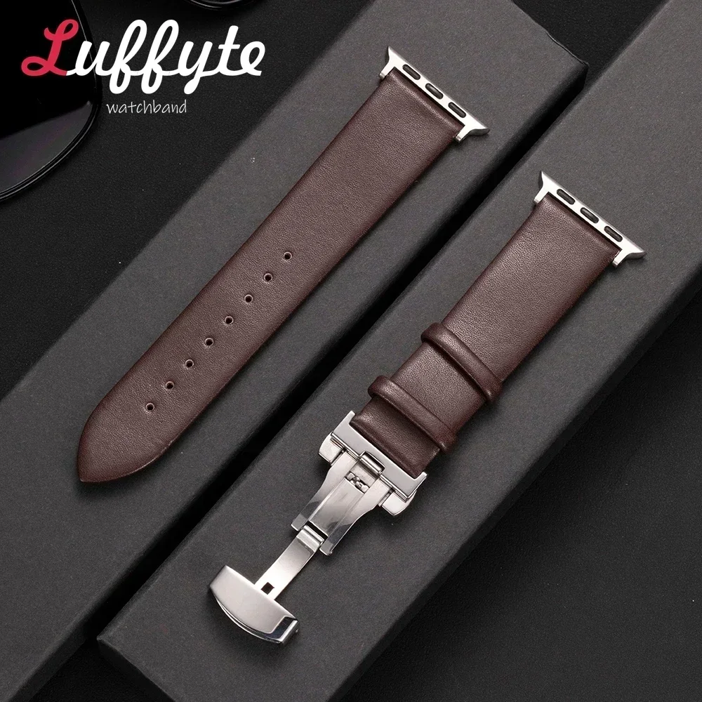 Ultra-thin Leather Strap For Apple Watch 1-10 Ultra SE 2 WristBand with Butterfly Buckle For IWatch3...