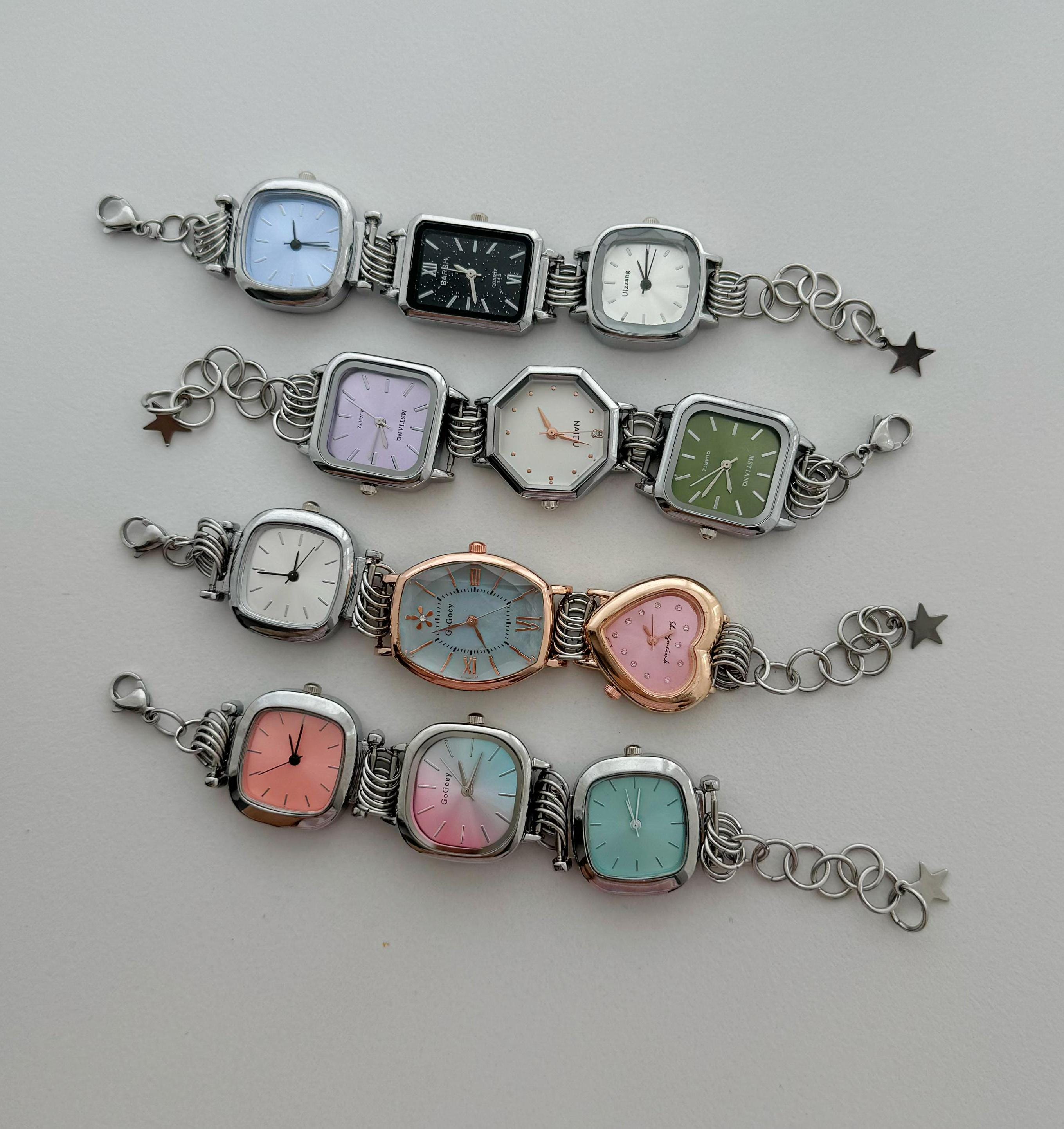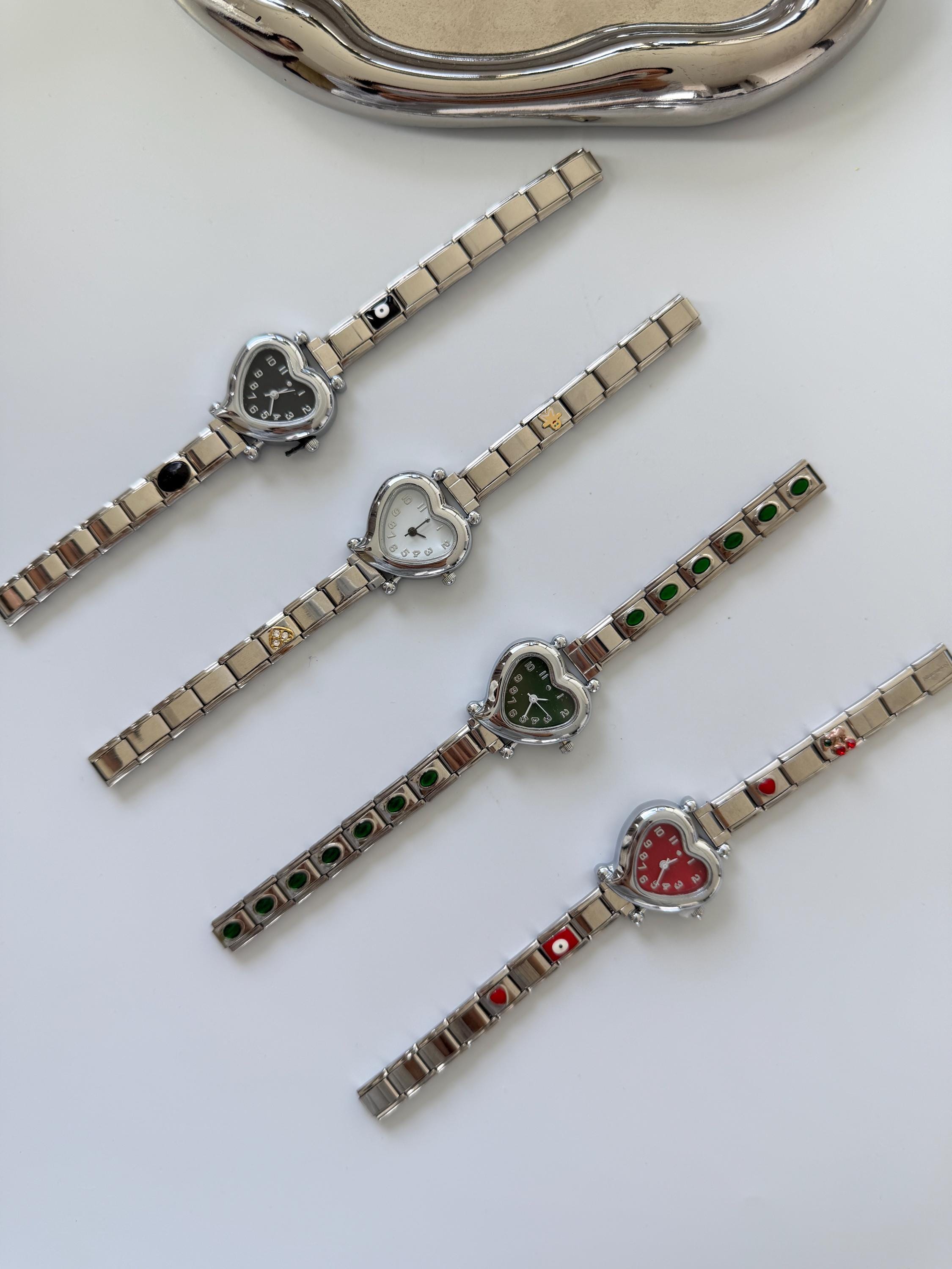 Y2K Silver Modular Heart Watch Bracelet,DIY Charm Modular Bracelet,...