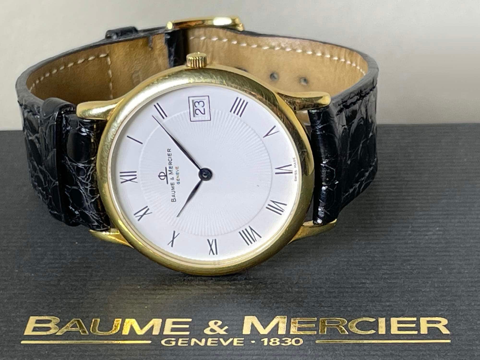 "Thin Men's 18K Gold Baume & Mercier Statement Watch \&quo...