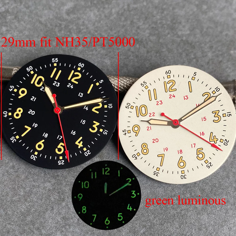 Cream Black Field Watch Dial 29mm Luminous Yellow Marks Fit NH35 NH36 NH38 ETA 2824 PT5000 SKX Diver...