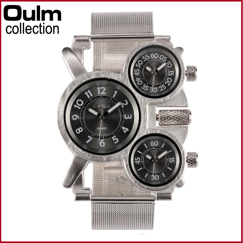 Oulm 1167 Three Time Zone Quartz Watches Men Mesh Steel Leather Band Sport Wristwatch Man Luxury Bra...