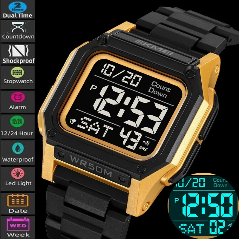 Skmei 5 Bar Waterproof Fashion Men's Sports Watch Dual Time Zone 12 24 Hour Format LED Light Digital...
