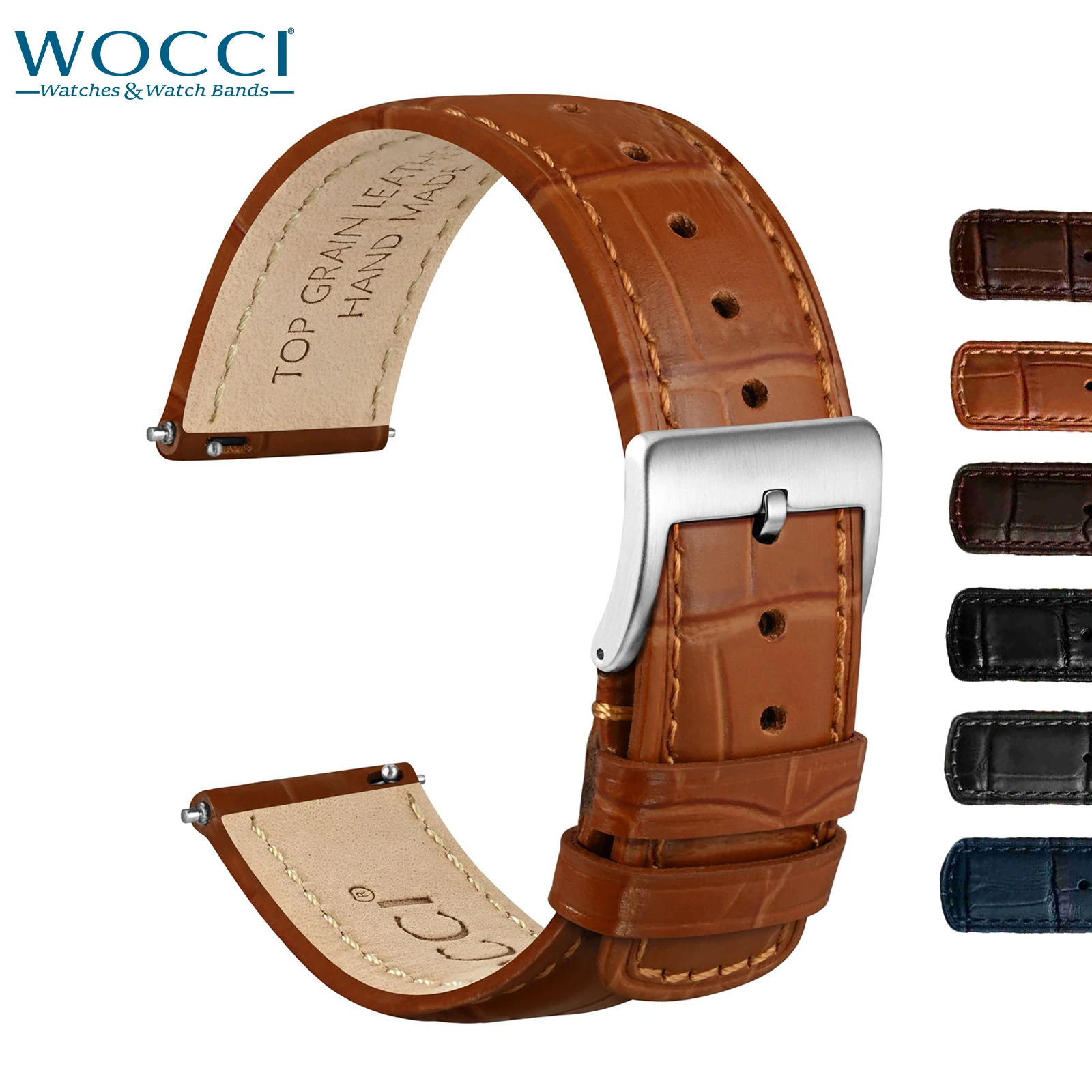 WOCCI Alligator Grain Leather Watch Strap 18mm 20mm 22mm 24mm Quick...