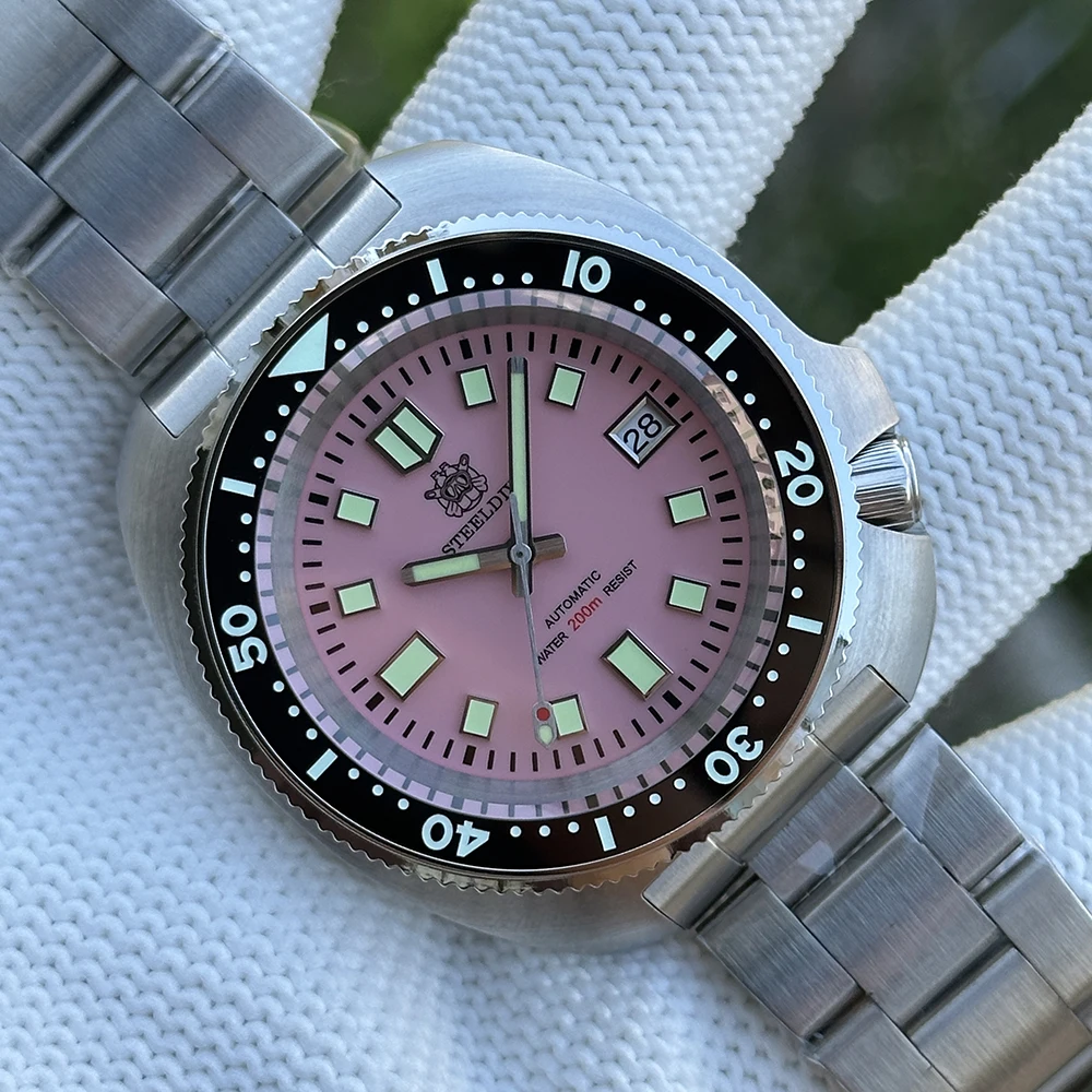 STEELDIVE SD1974 New 43.8mm Pink Dial Black Ceramic Bezel AR Coat Sapphire Glass Super Luminous NH35...