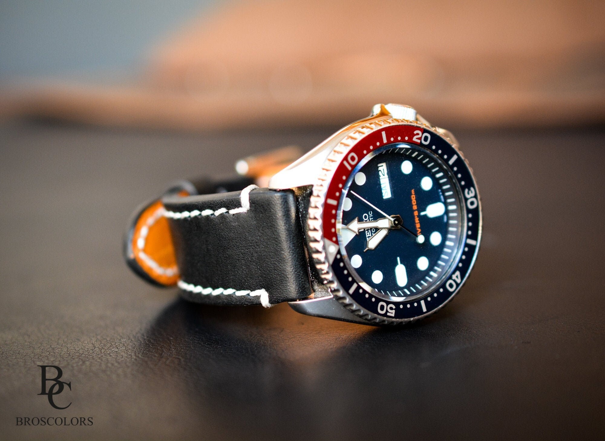 Black Leather Watch Band, Seiko Watch Strap, Black Color Real Leath...