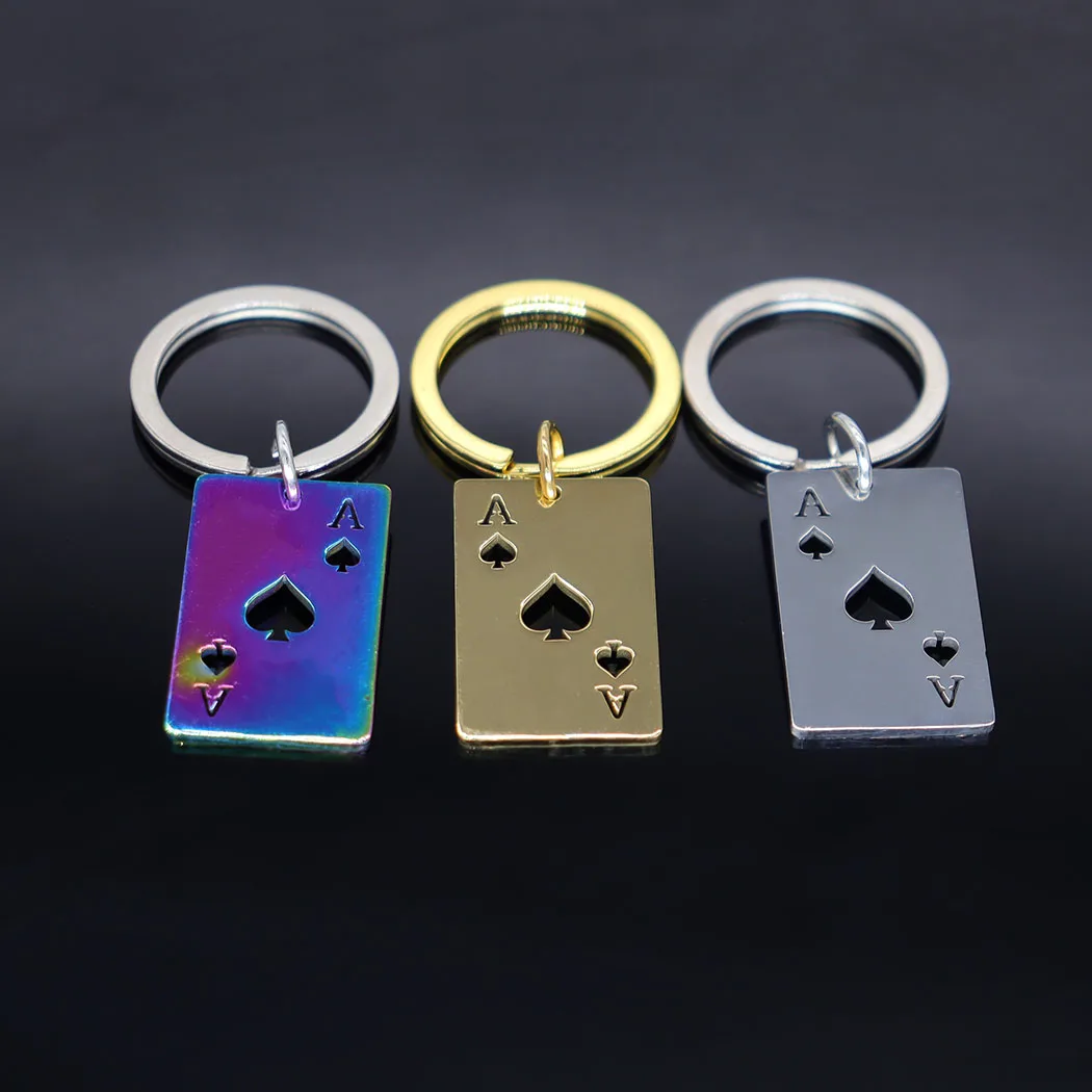 2024 new fashion stainless steel poker Spades A pendant keychain te...