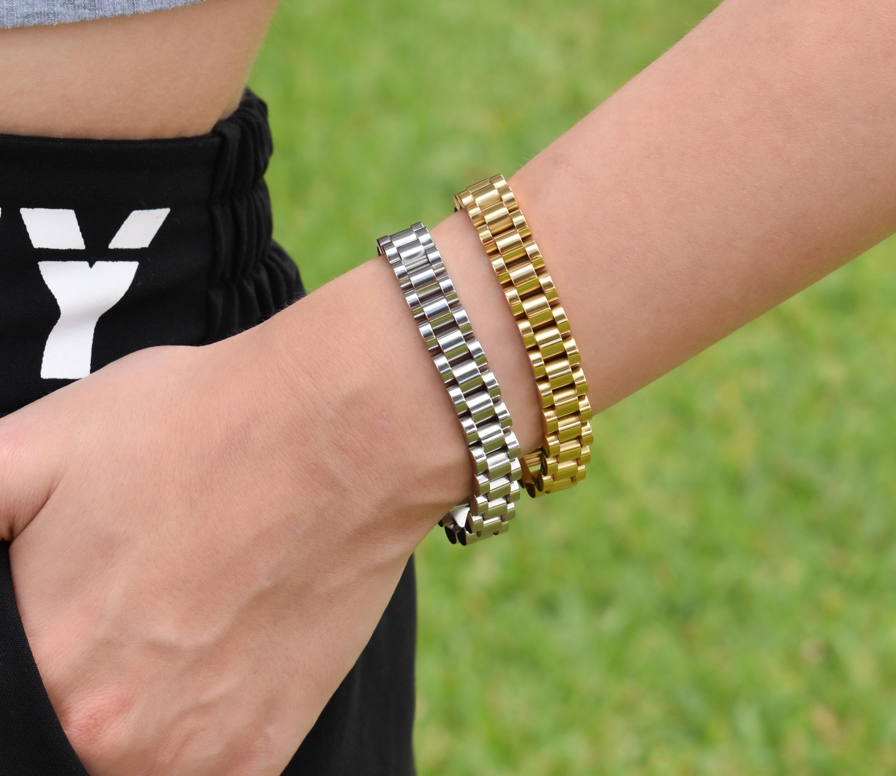 Gold Watch Link Bracelet Waterproof Customized Personalized Name En...