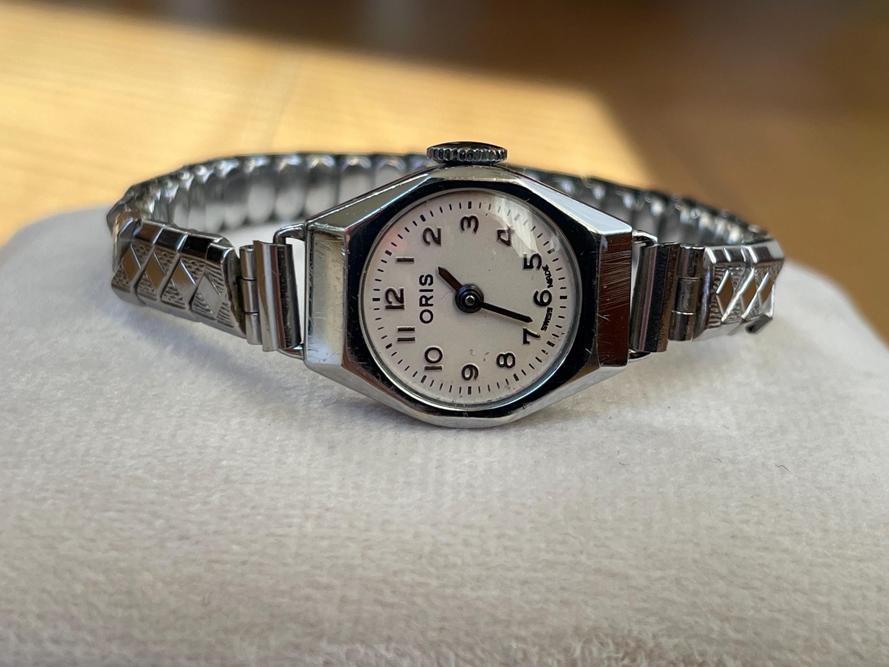 "Beautiful 1960's Vintage small Swiss ladies dress wristwatch Oris silver color case. Collectib...
